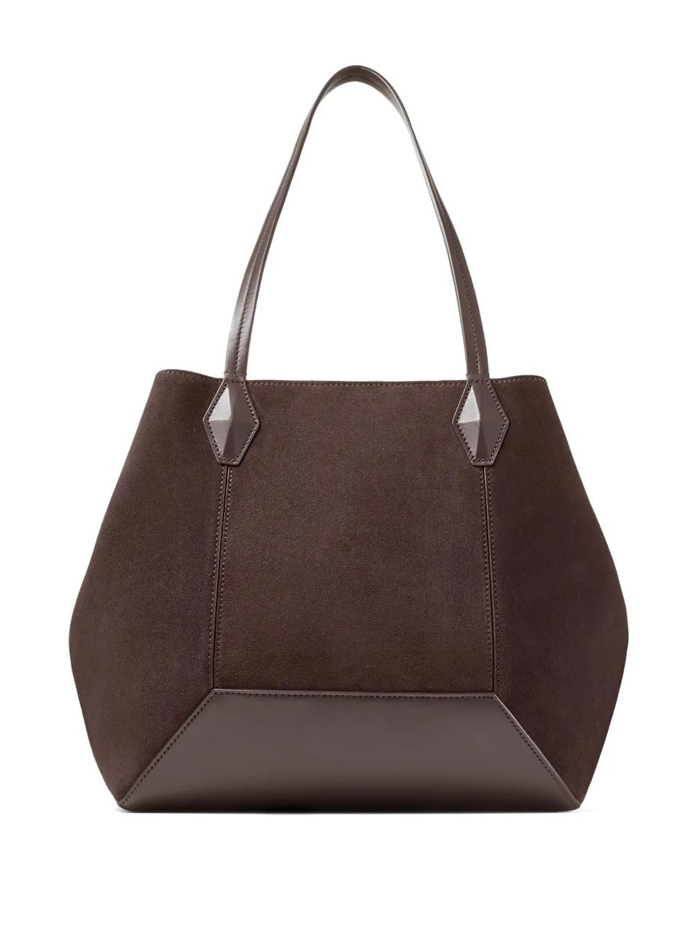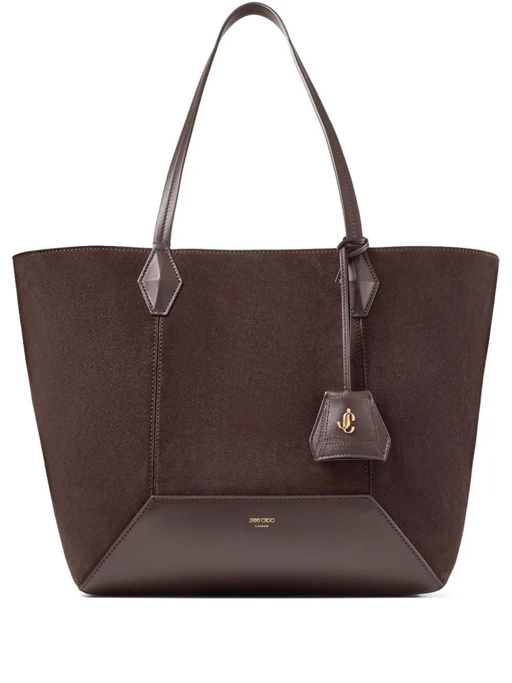 brown calf suede/calf leather panelled design open top two top handles adjustable shoulder strap logo print to the front leather tag gold-tone logo plaque main compartment internal zip-fastening pocket Wardrobe Icon