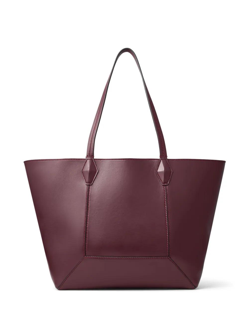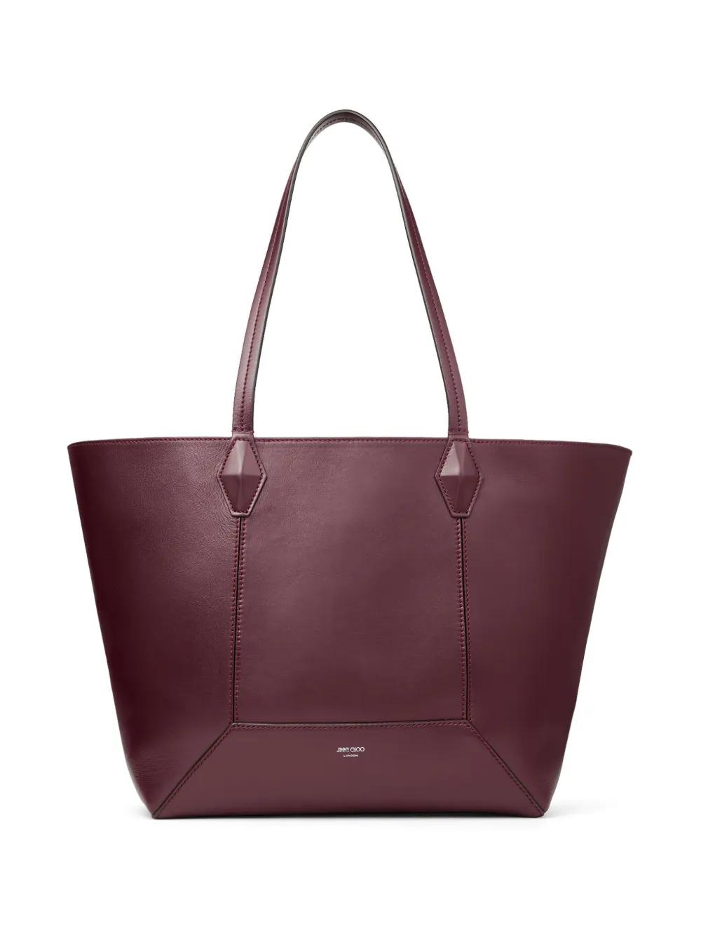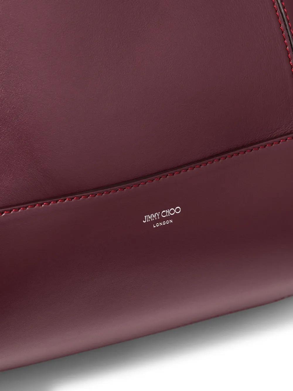 bordeaux red calf leather logo stamp to the front two long top handles open top main compartment internal zip-fastening pocket