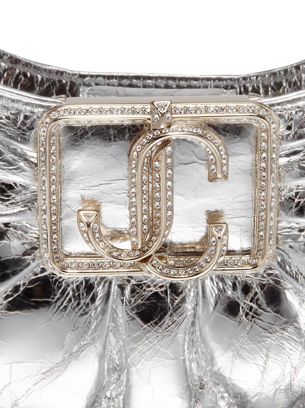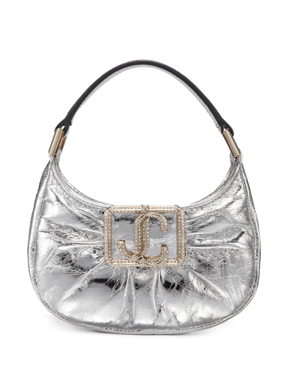 silver-tone leather metallic finish crinkled finish concealed magnetic fastening single top handle detachable shoulder strap logo plaque main compartment