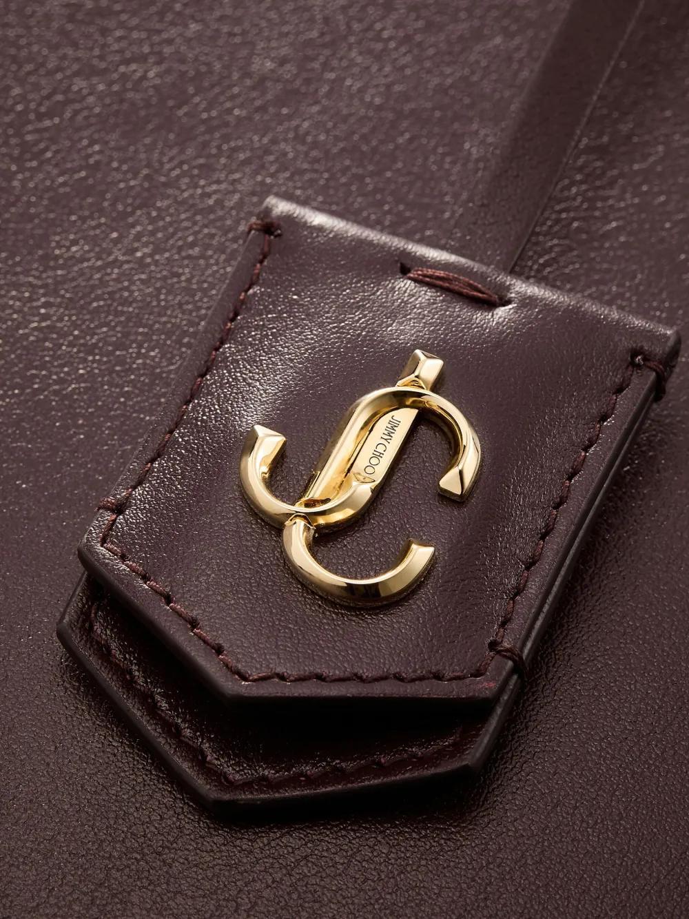 deep purple calf leather gold-tone logo plaque double top-handle internal zipped-pocket
