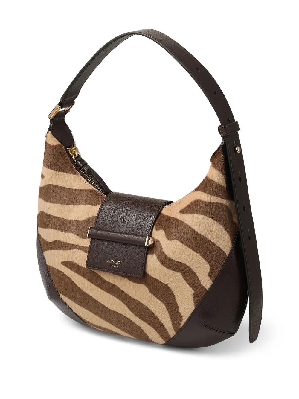 chocolate brown zebra print top handle leather trim zip fastening This piece comes complete with a protective dust bag.