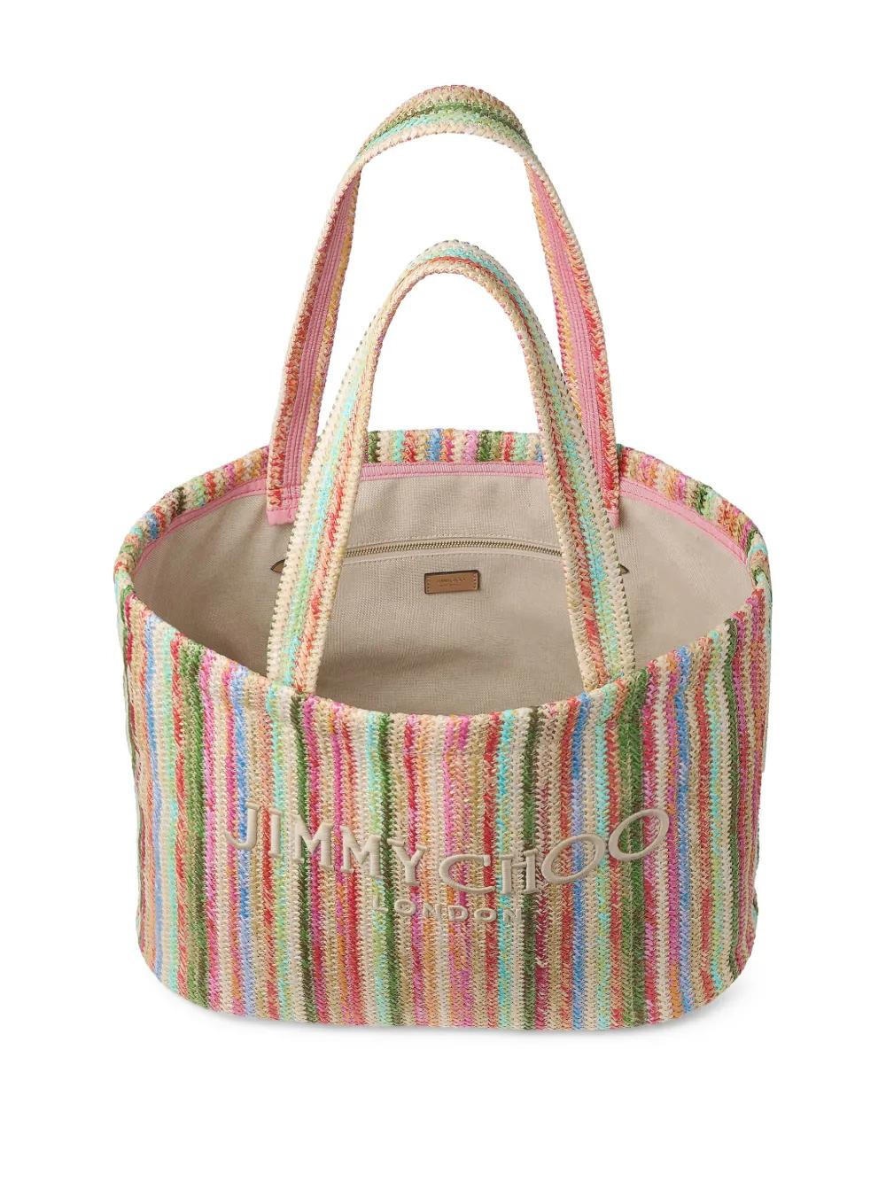 multicolour two long top handles embroidered logo to the front main compartment internal zip-fastening pocket