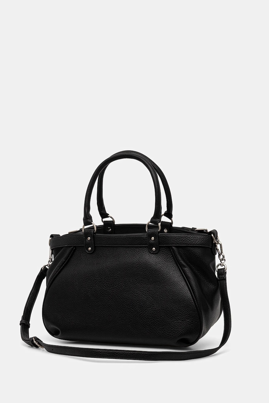 - Dołączony tekstylny worek zabezpiecza produkt przed kurzem. - Zapięcie na suwak. - Posiada uchwyty i odpinany pasek z regulacją. - Mieści format A4. - Model z podszewką. - Kieszonka wewnętrzna zapinana na suwak. - Model wyposażony w metalowe nóżki, które zabezpieczają spód torebki. - Wsuwana kieszeń wewnętrzna. - Długość uchwytów: 41 cm. - Długość minimalna paska: 96 cm. - Długość maksymalna paska: 109 cm. - Głębokość: 17 cm. - Wysokość: 24 cm. - Szerokość u podstawy: 37 cm.