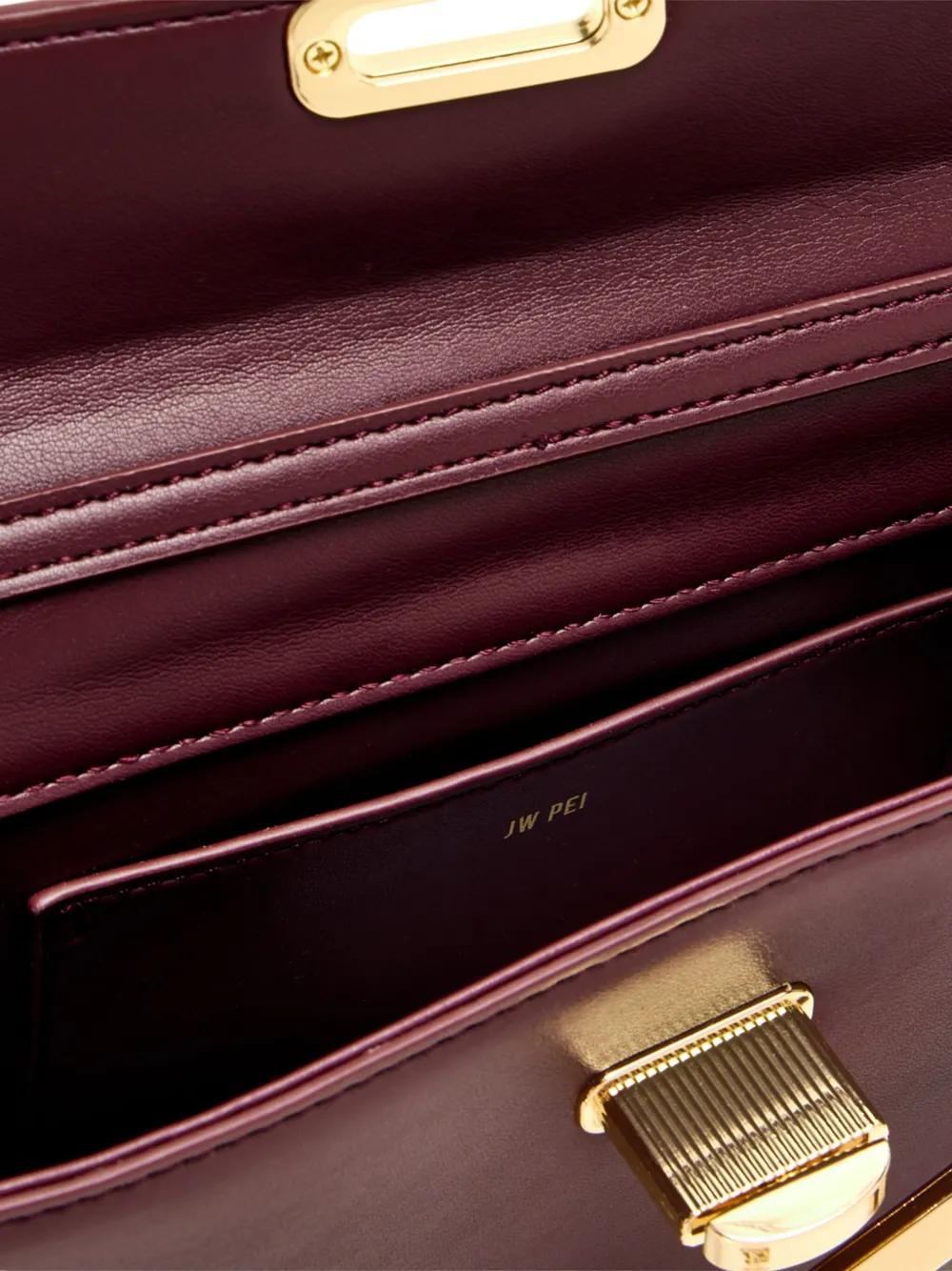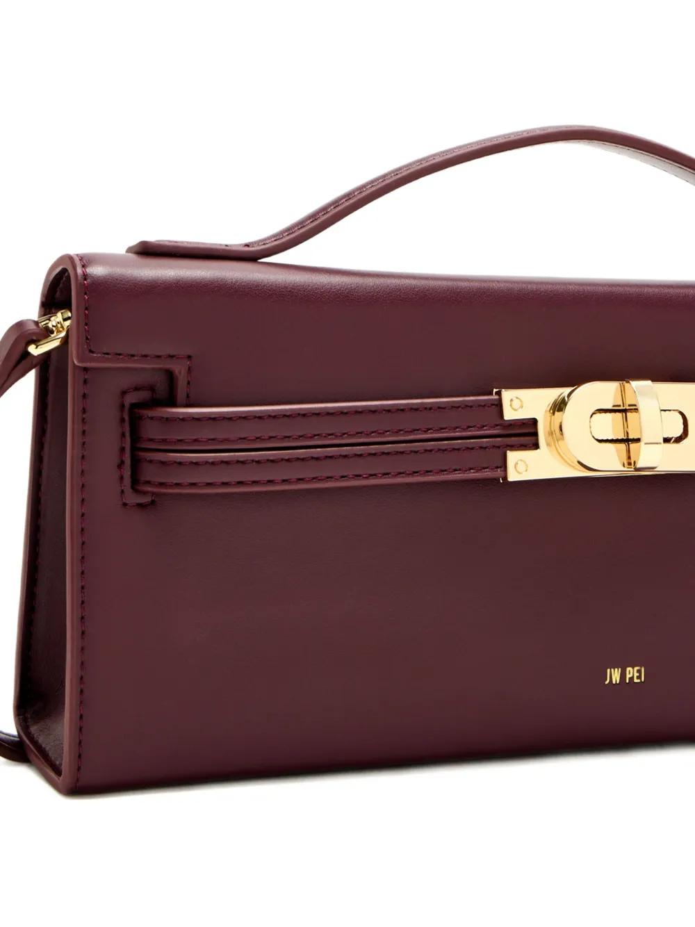 burgundy leather construction top handle gold-tone clasp detachable adjustable strap