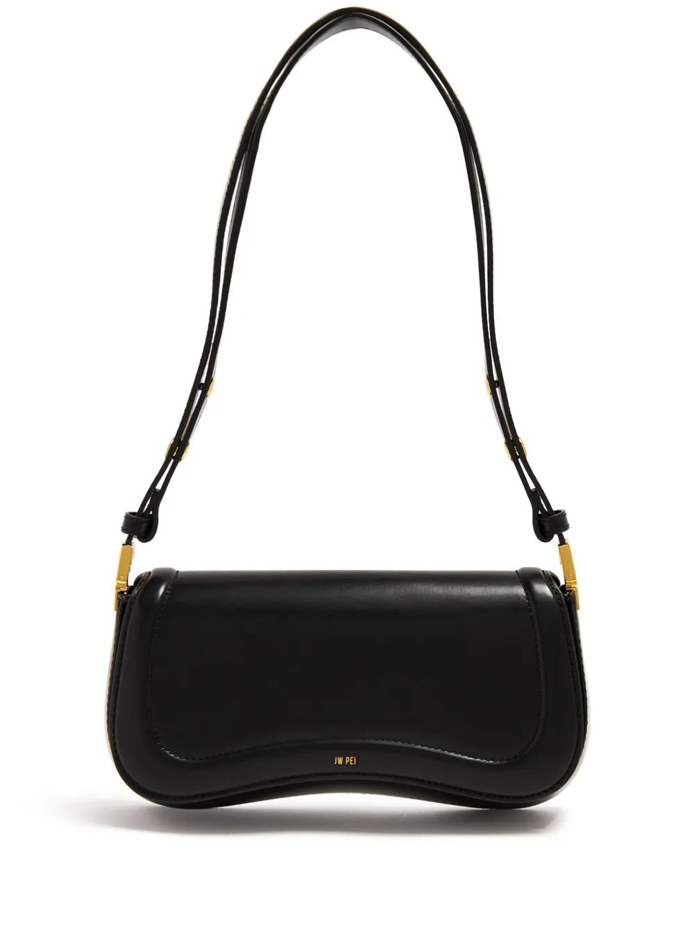 black calf leather gold-tone hardware internal pocket adjustable shoulder strap magnetic fastening main compartment asymmetric body