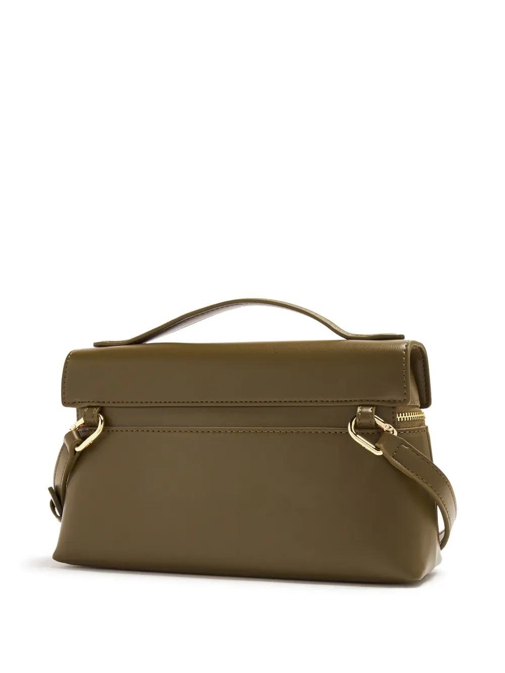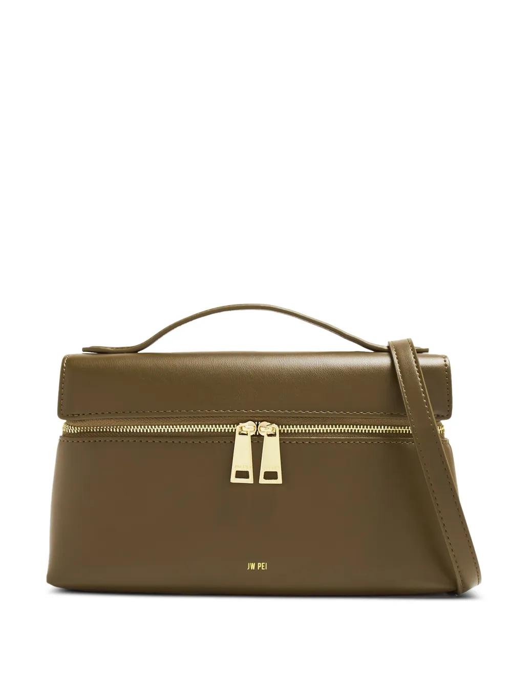 taupe brown two-way zip fastening single flat top handle adjustable detachable shoulder strap logo stamp to the front