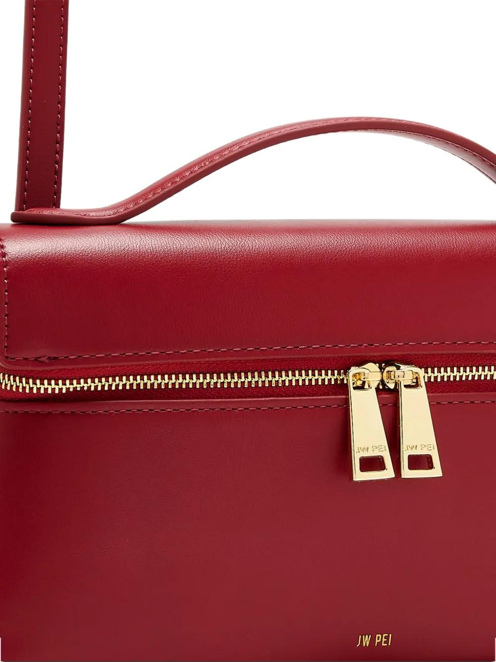 red dual zip fastening top handle detachable shoulder strap gold-tone hardware internal pocket