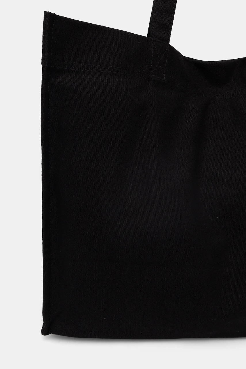 - Ten produkt został częściowo uszyty z bawełny pochodzącej z recyklingu. - Zapięcie na magnes. - Mieści format A4. - Krótkie uchwyty dla komfortowego noszenia w dłoni lub na ramieniu. - Kieszonka wewnętrzna zapinana na suwak. - Głębokość: 19 cm. - Wysokość: 38 cm. - Szerokość u podstawy: 44,5 cm.