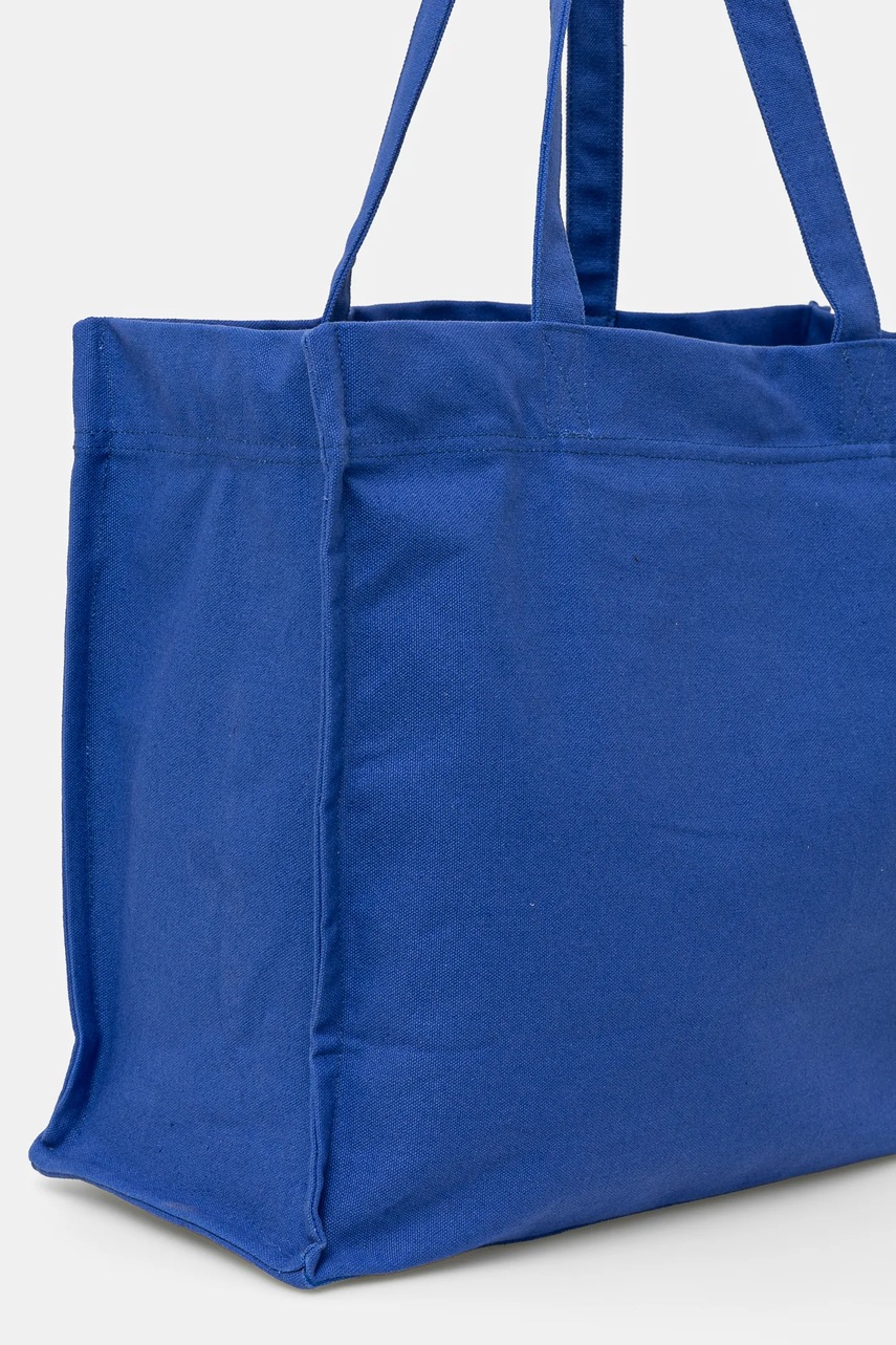 - Ten produkt został częściowo uszyty z bawełny pochodzącej z recyklingu. - Zapięcie na magnes. - Mieści format A4. - Krótkie uchwyty dla komfortowego noszenia w dłoni lub na ramieniu. - Kieszonka wewnętrzna zapinana na suwak. - Głębokość: 19 cm. - Wysokość: 38 cm. - Szerokość u podstawy: 44,5 cm.