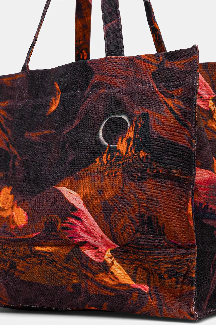 - Zapięcie na suwak. - Kieszonka wewnętrzna zapinana na suwak. - Uchwyty dla komfortowego noszenia w dłoni lub na ramieniu. - Mieści format A4. - Głębokość: 20 cm. - Wysokość: 35 cm. - Szerokość u podstawy: 40 cm.