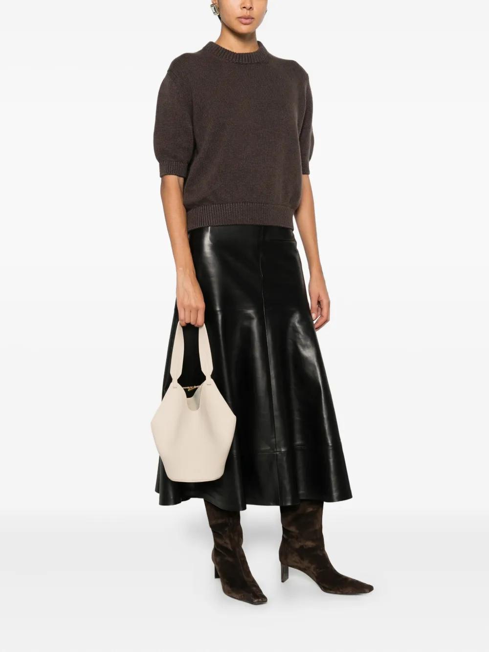 khaki calf leather bucket shape top handles detachable strap stitch detailing