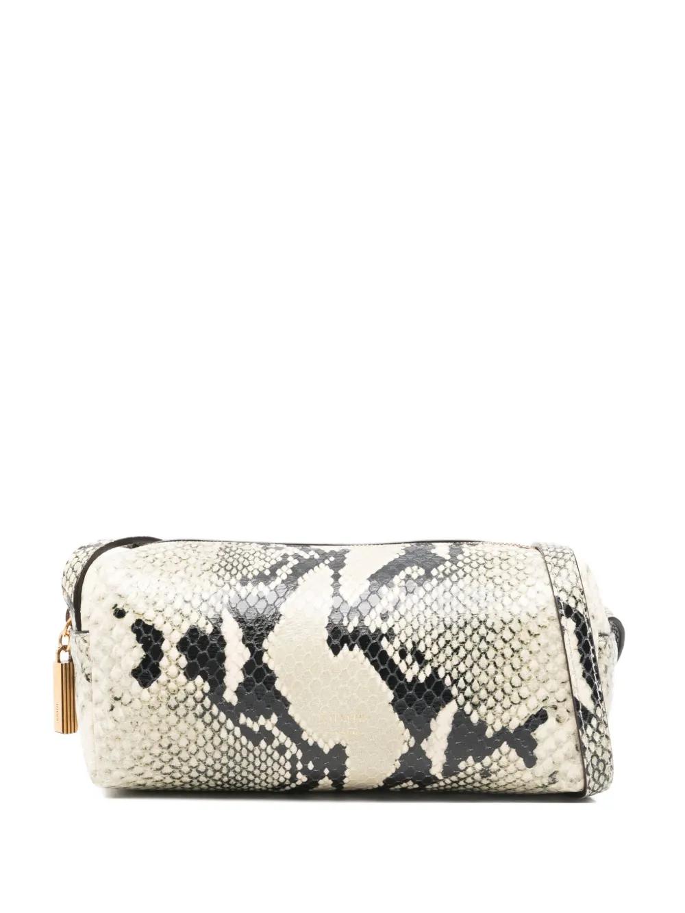 beige top zip fastening two rolled top handles adjustable detachable shoulder strap logo stamp to the front