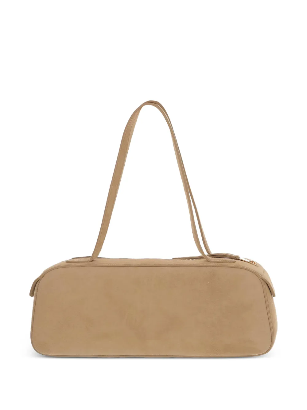 beige top zip fastening two rolled top handles adjustable detachable shoulder strap logo stamp to the front