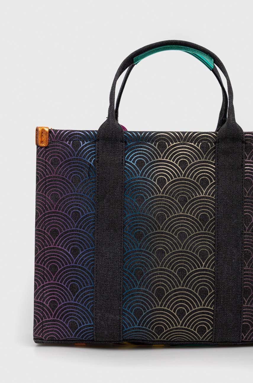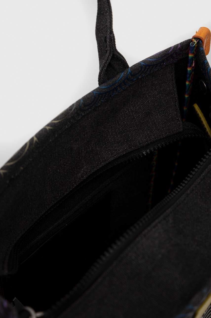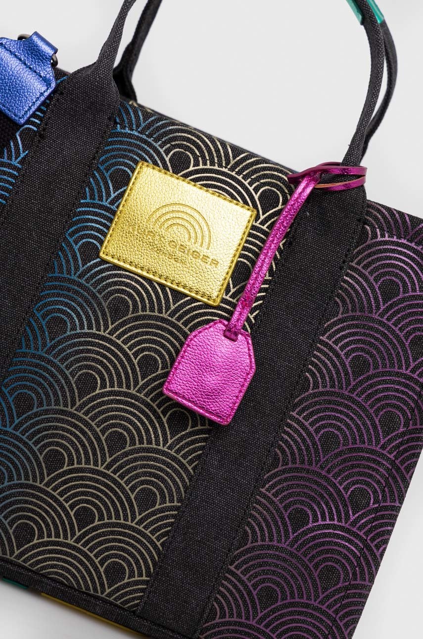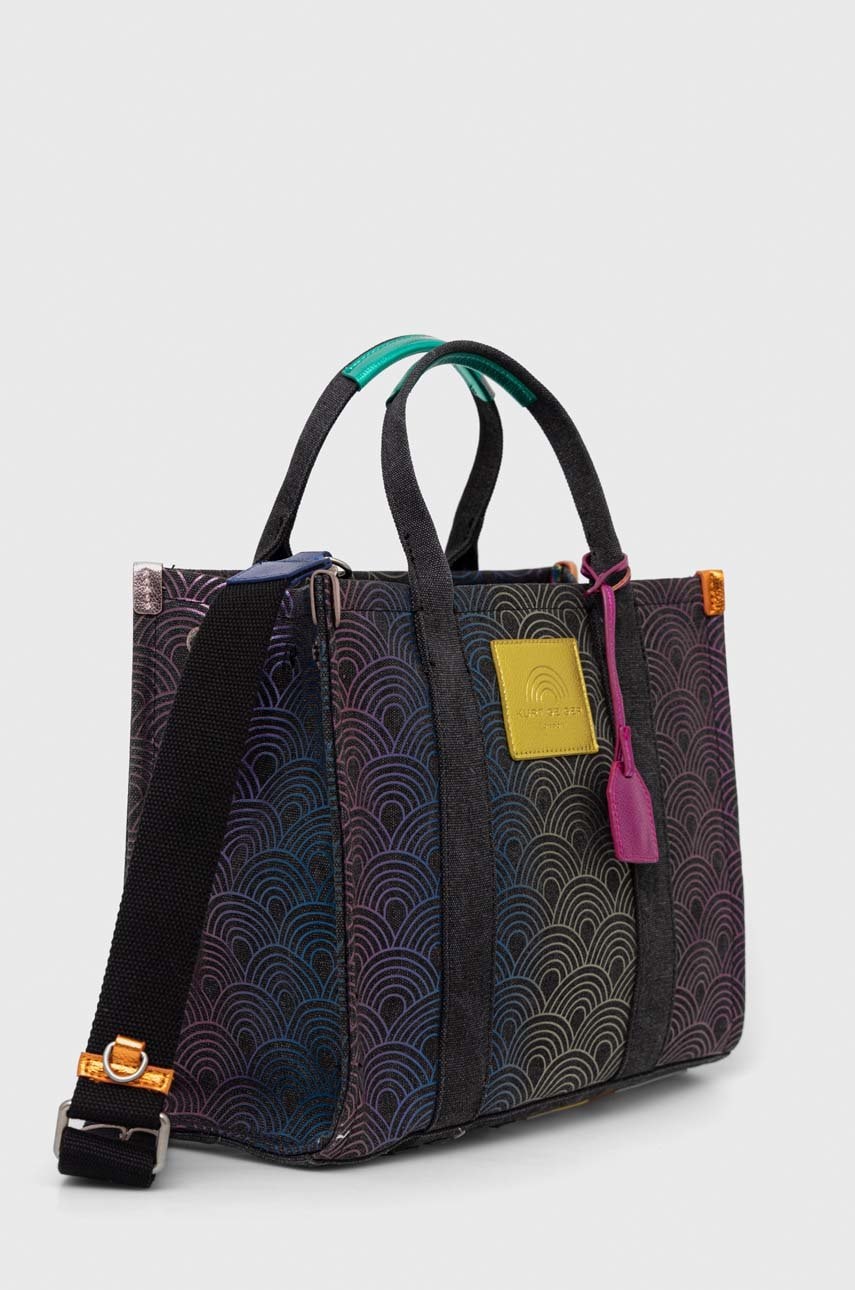- Zapięcie na suwak. - Kieszonka wewnętrzna zapinana na suwak - Nie mieści formatu A4. - Do modelu dołączony brelok. - Posiada uchwyty i odpinany pasek z regulacją. - Torebka do noszenia w ręku lub na ramieniu. - Długość uchwytów: 35 cm. - Głębokość: 12 cm. - Wysokość: 25 cm. - Szerokość u podstawy: 33 cm.