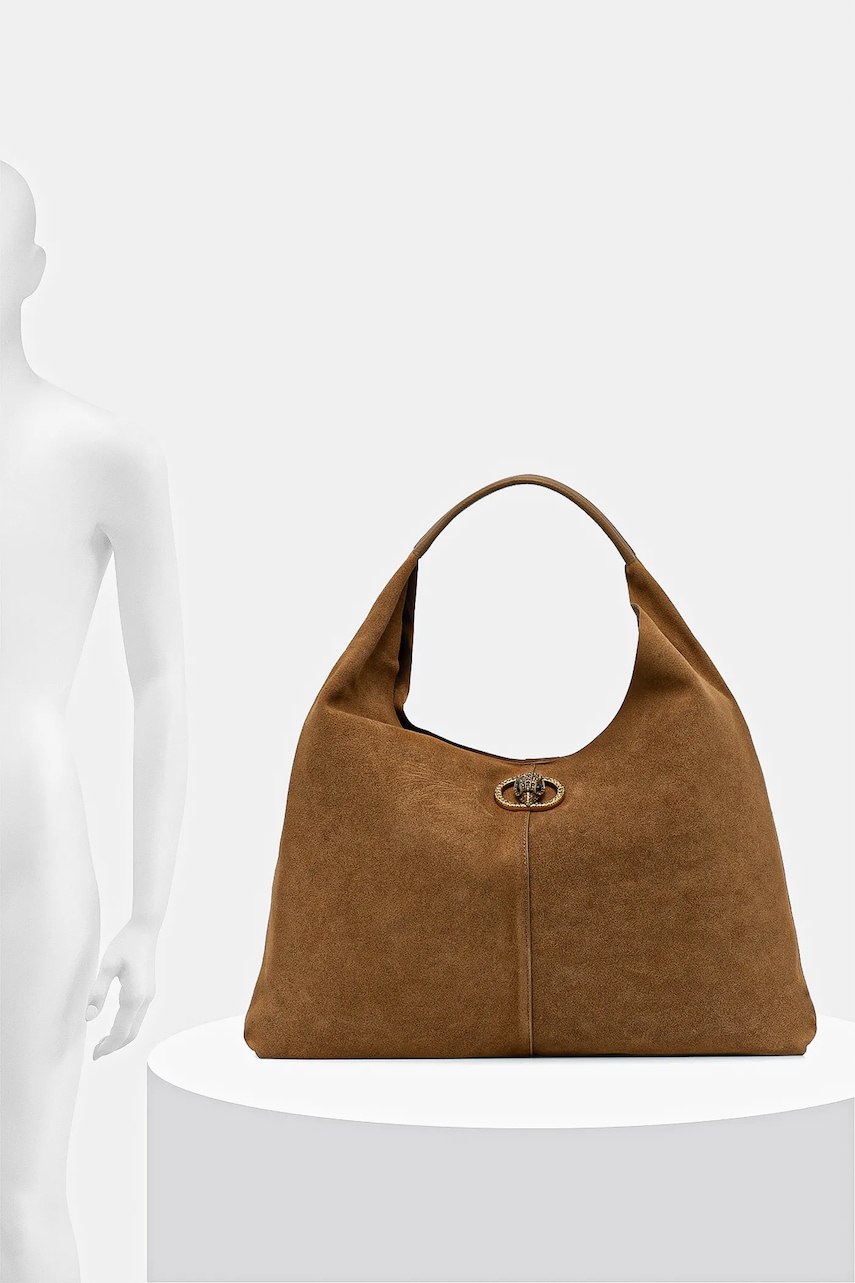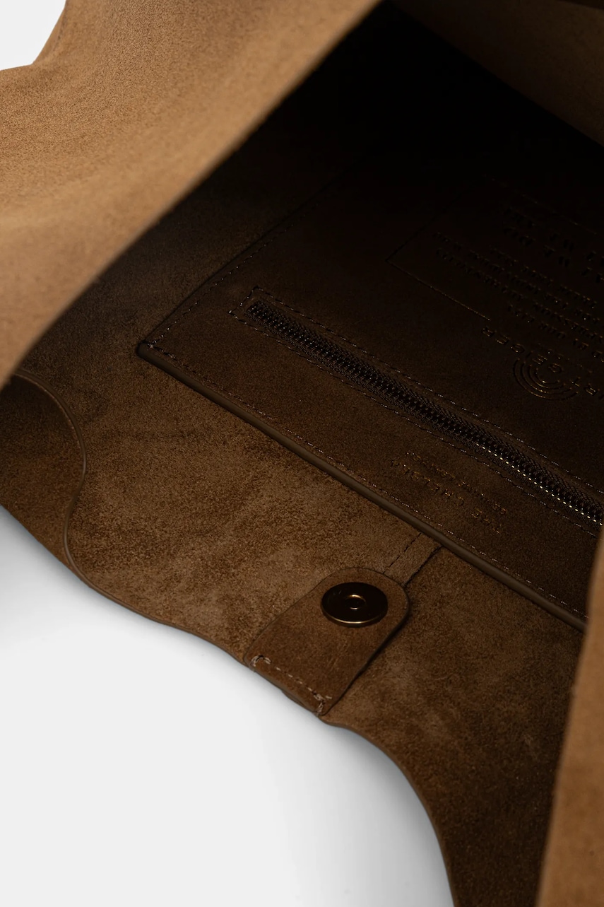 - Zapięcie na magnes. - Model bez podszewki. - Długi uchwyt. - Kieszonka wewnętrzna zapinana na suwak. - Mieści format A4. - Dołączony tekstylny worek zabezpiecza produkt przed kurzem. - Długość uchwytu: 25 cm. - Głębokość: 11 cm. - Wysokość: 36 cm. - Szerokość u podstawy: 48 cm.