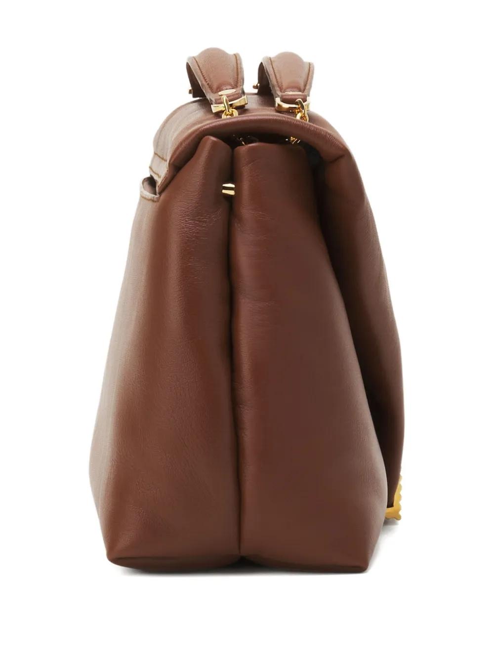 brown suede top handle logo charm embossed logo This piece comes complete with a protective dust bag.