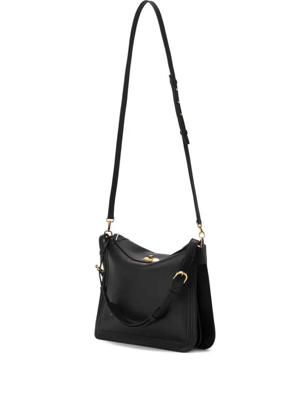 black leather gold-tone hardware adjustable detachable shoulder strap