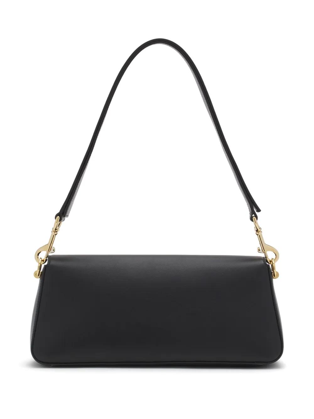 black leather smooth grain logo-engraved gold-tone hardware single detachable top handle adjustable detachable shoulder strap foldover top with magnetic fastening main compartment internal card slot
