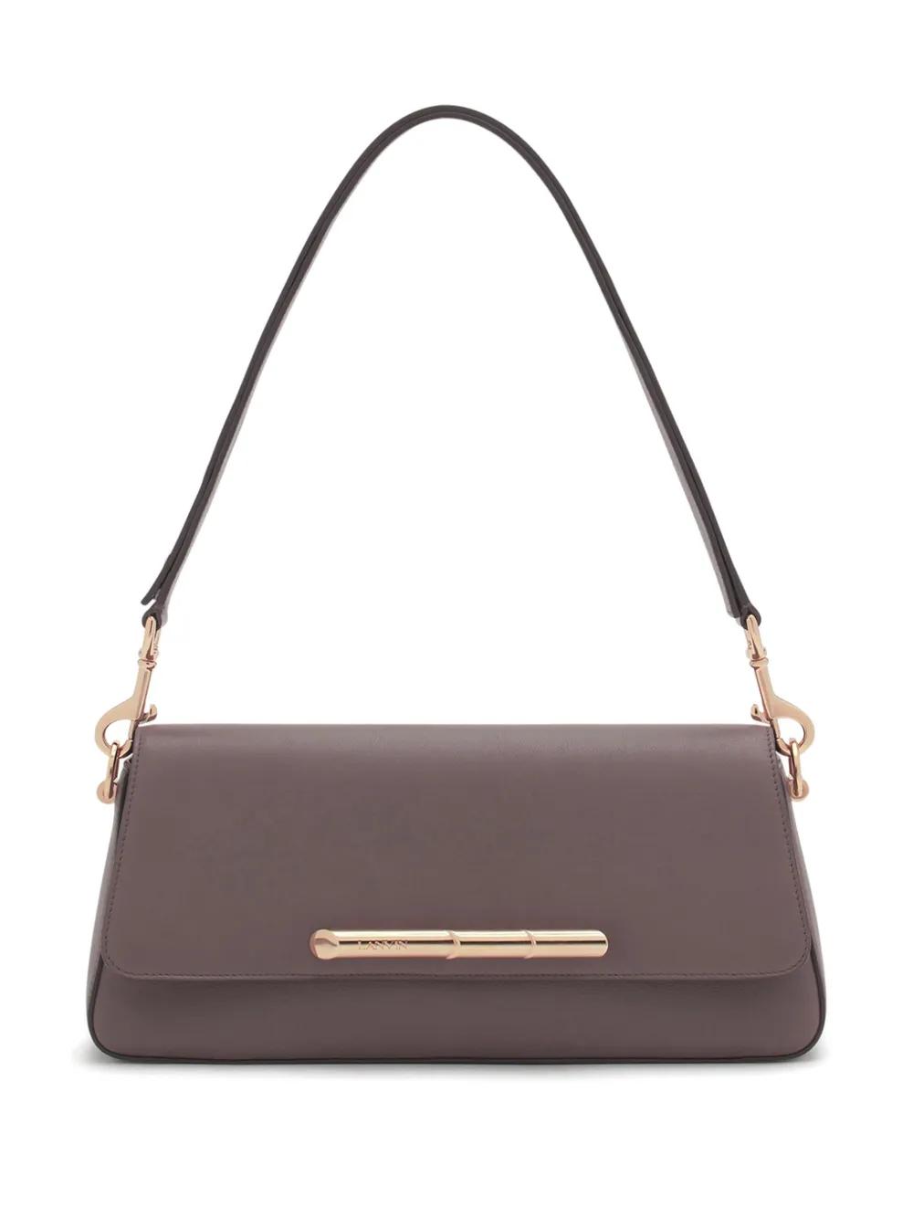 ochre brown leather smooth grain logo-engraved gold-tone hardware single detachable top handle adjustable detachable shoulder strap foldover top with magnetic fastening main compartment internal card slot