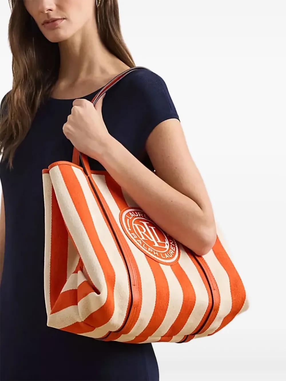 Lauren Ralph Lauren Emerie striped tote bag - Orange