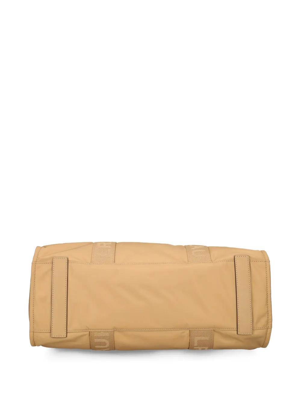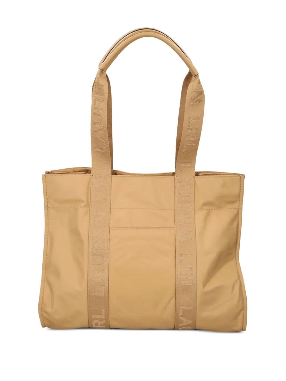 beige embossed logo detailing dual shoulder straps dual top handles open-top design main compartment