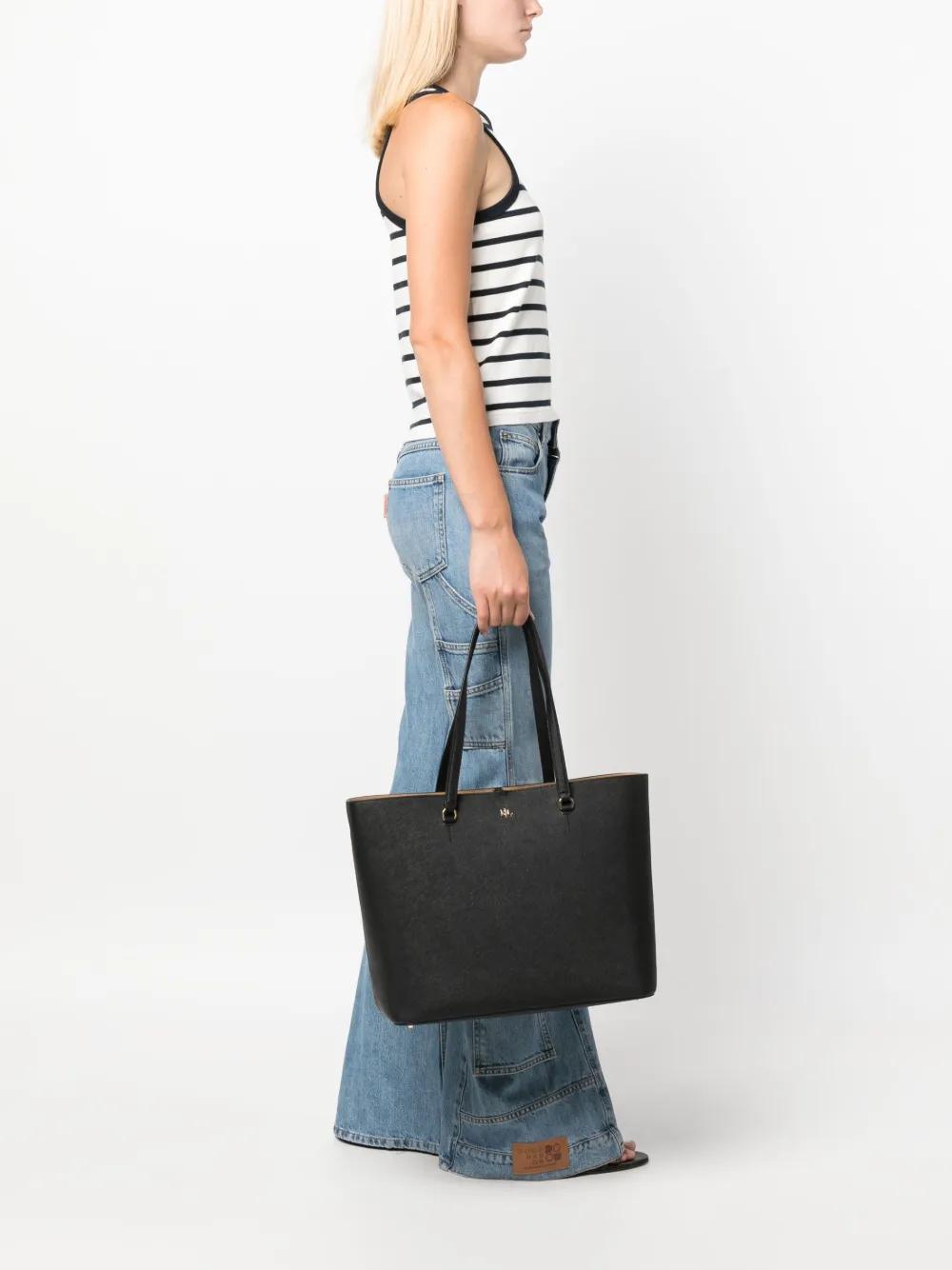 black calf leather gold-tone logo plaque two long top handles internal slip pocket