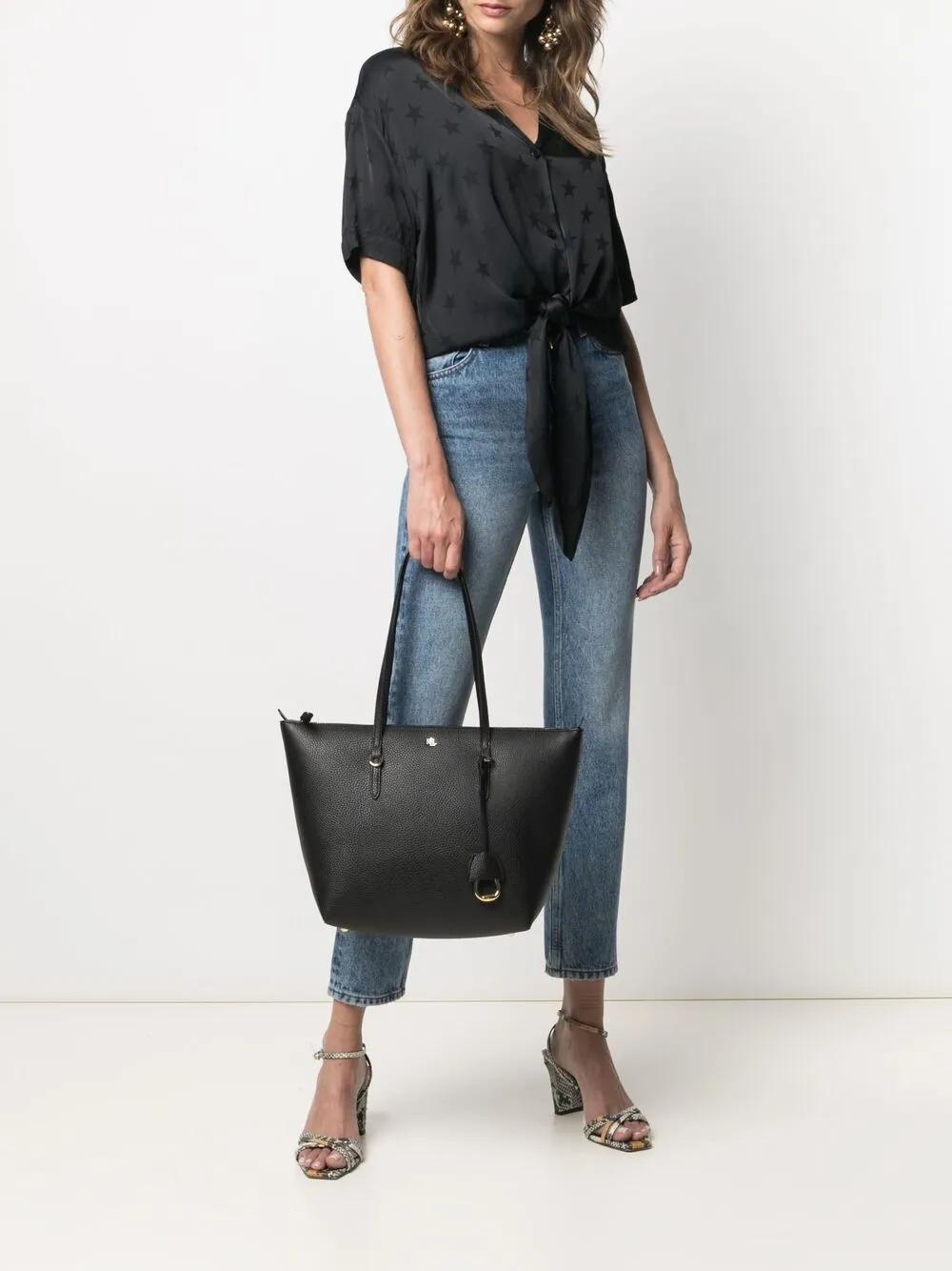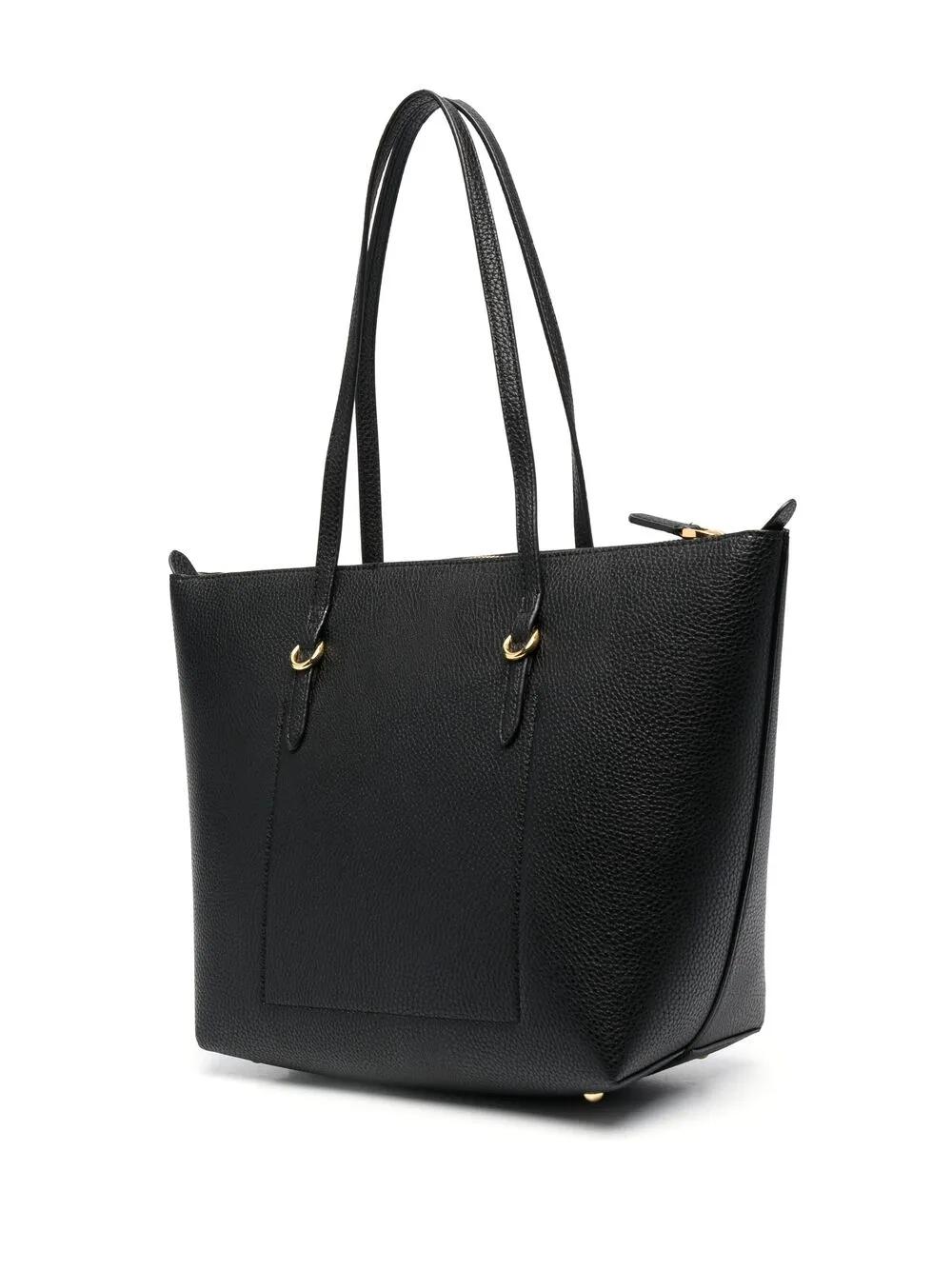 jet-black gold-tone hardware two top handles gold-tone logo lettering internal pocket