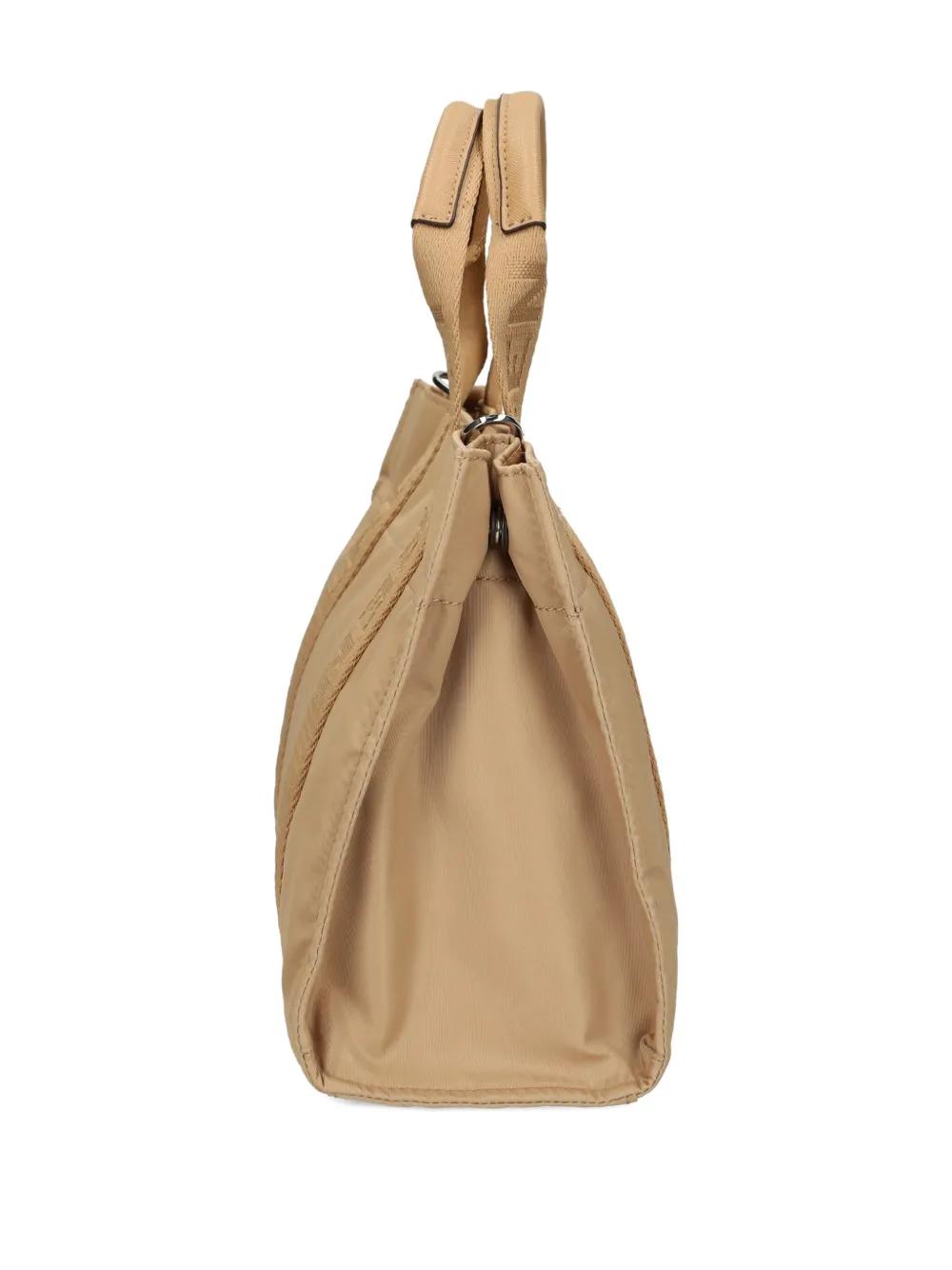 sand beige open top two rolled top handles adjustable detachable shoulder strap main compartment