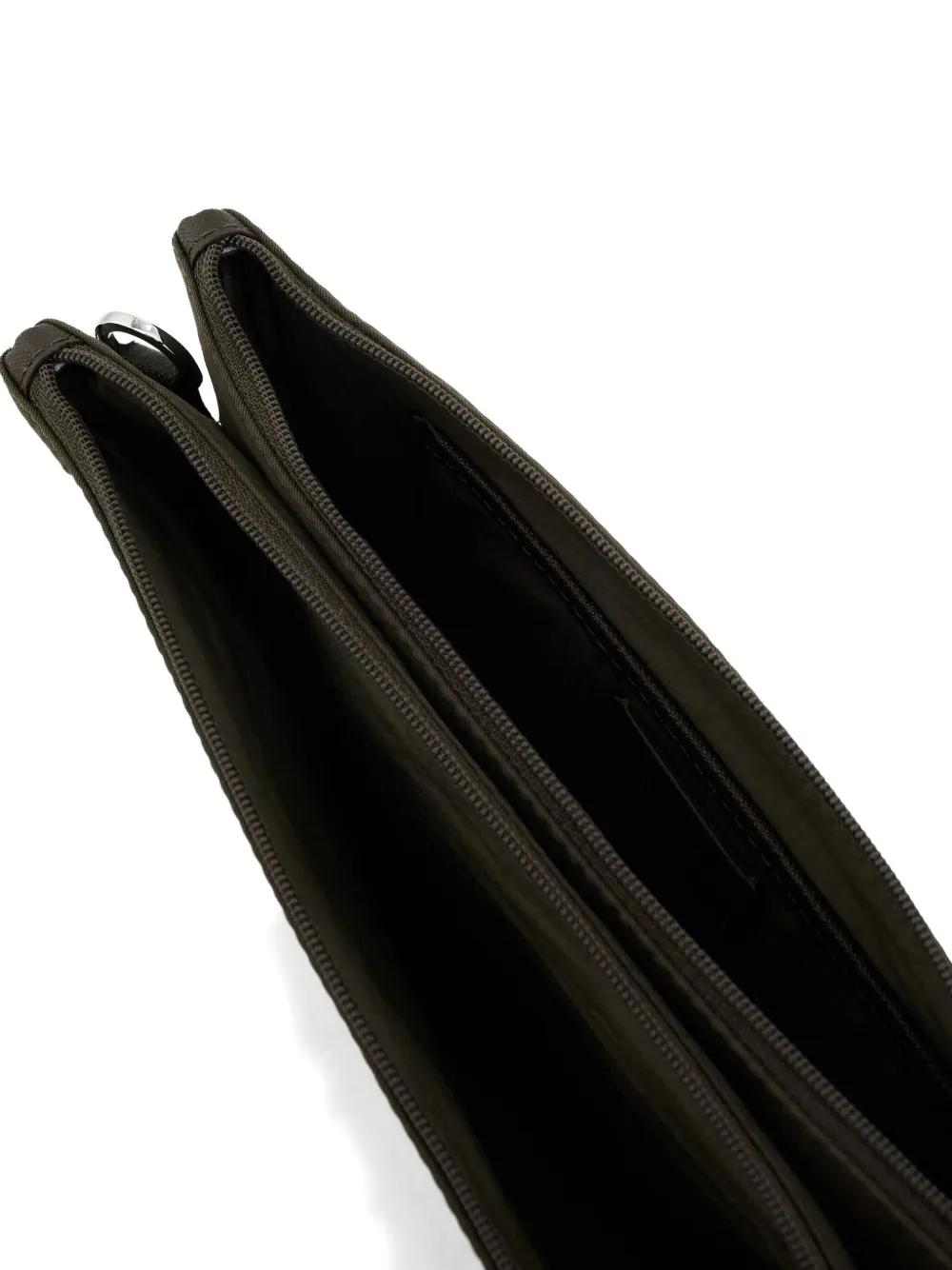 green logo plaque zip fastening adjustable shoulder strap two compartments