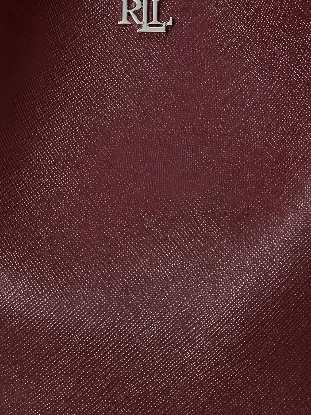 dark garnet top handle logo plaque detachable adjustable shoulder strap silver-tone hardware grained texture