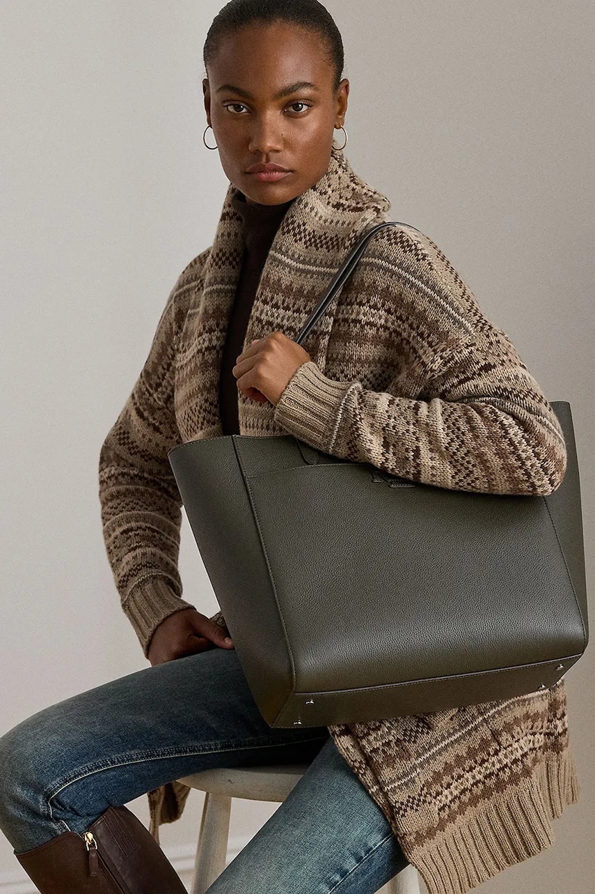 Lauren Ralph Lauren torebka skórzana kolor zielony 431960183