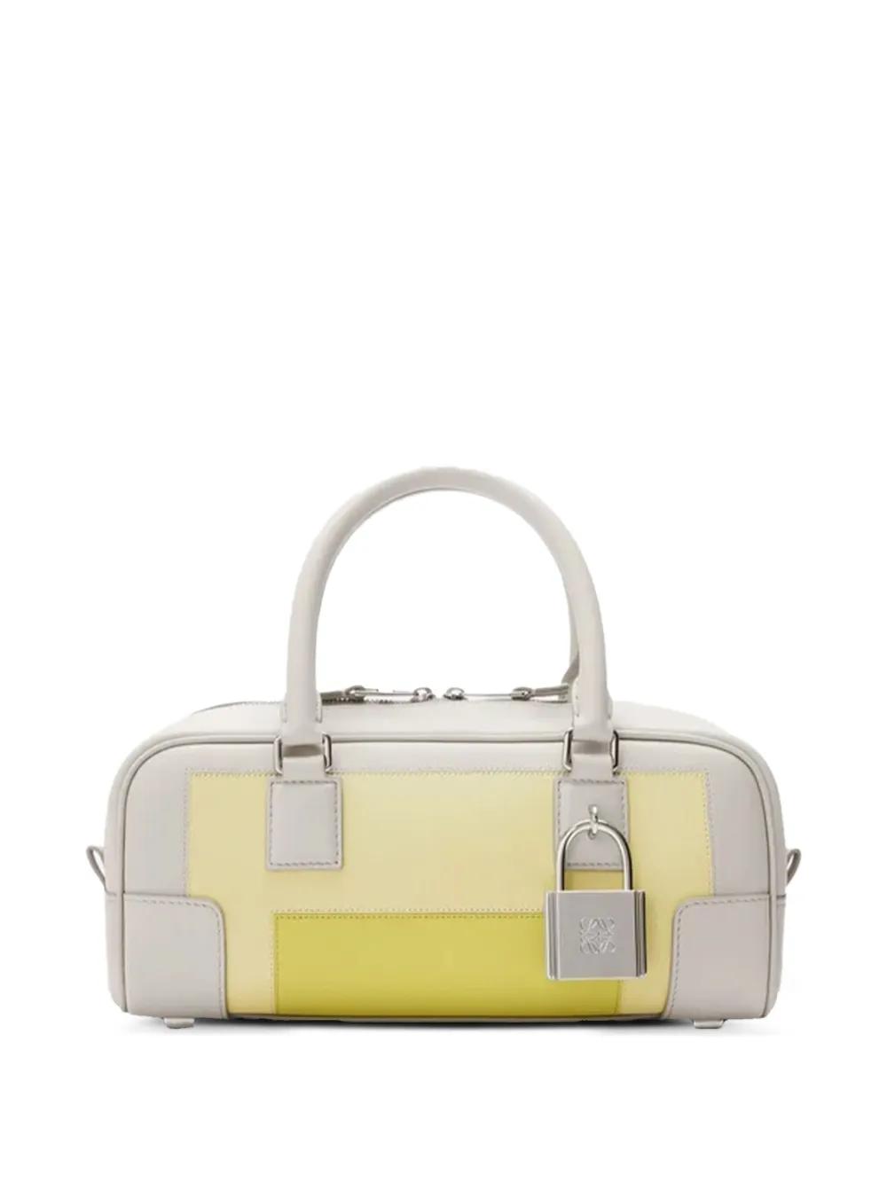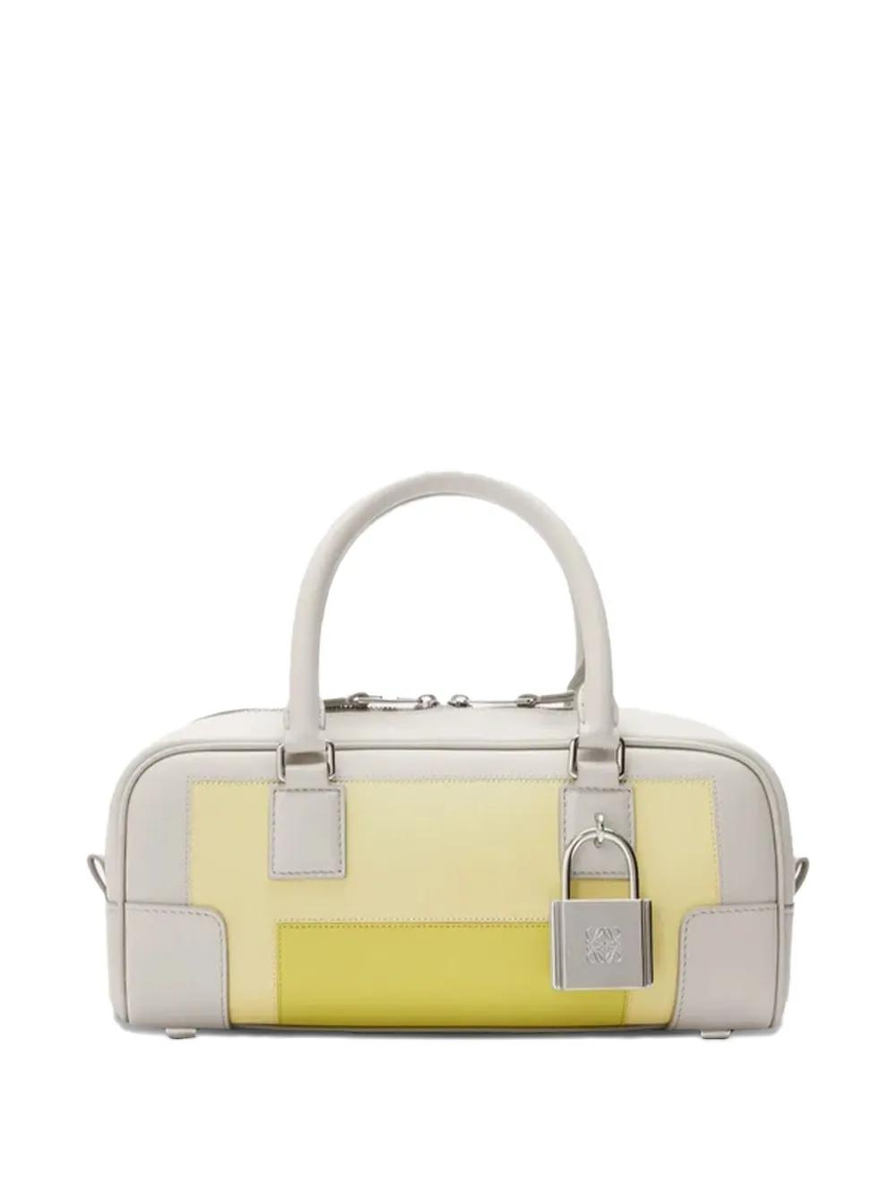 pale grey/light yellow top handles padlock silver-tone hardware zip fastening This piece comes complete with a protective dust bag.