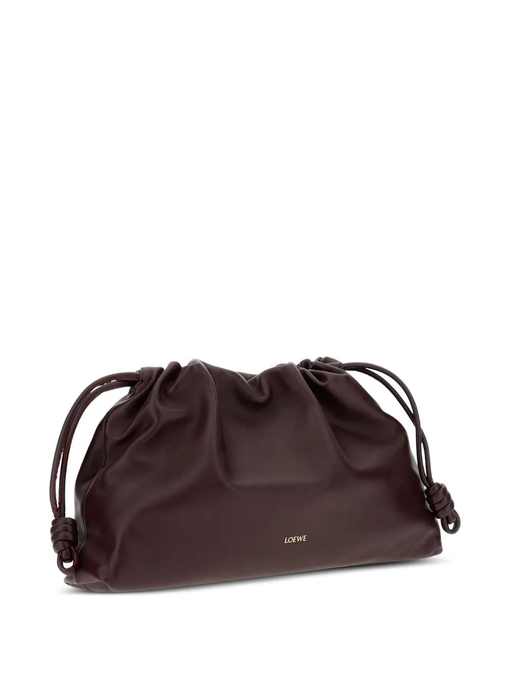 burgundy top handle drawstring closure This piece comes complete with a protective dust bag.