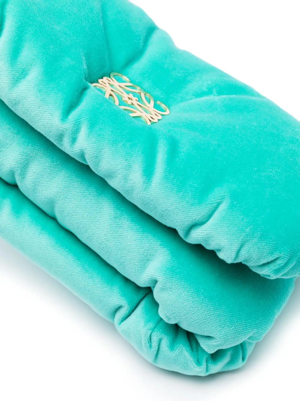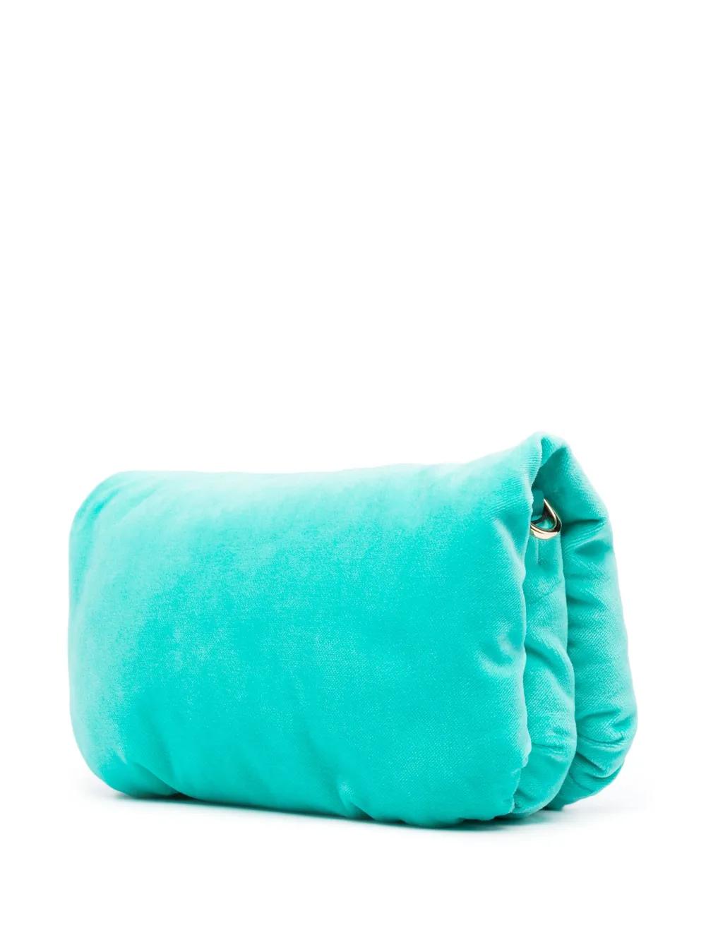 aqua blue leather padded design gold-tone logo plaque internal logo stamp foldover top with magnetic fastening chain-link shoulder strap main compartment internal zip-fastening pocket