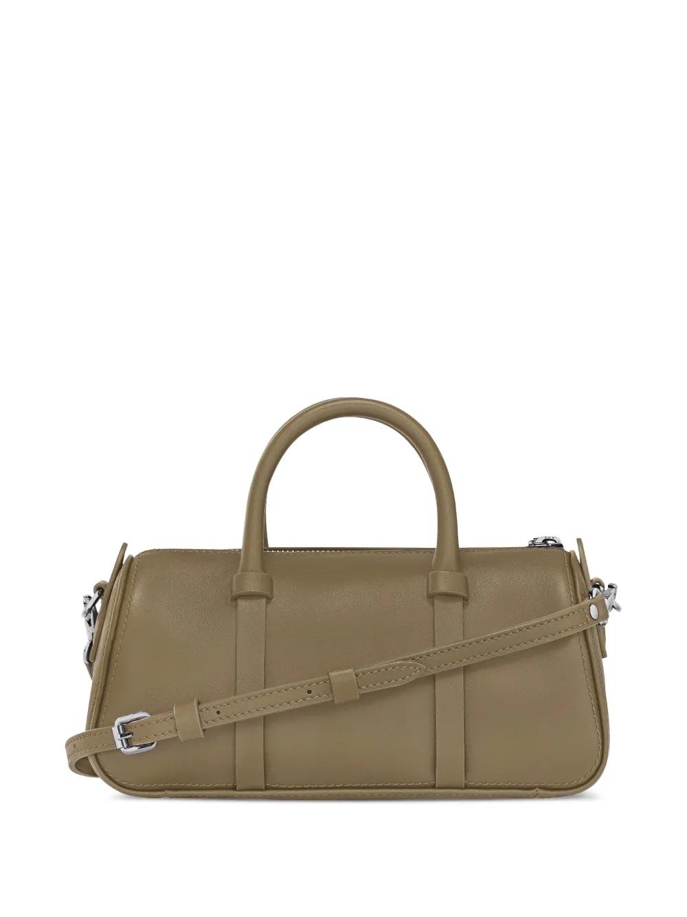 green calf leather top handles detachable shoulder strap cylindrical shape cavalier medal charm