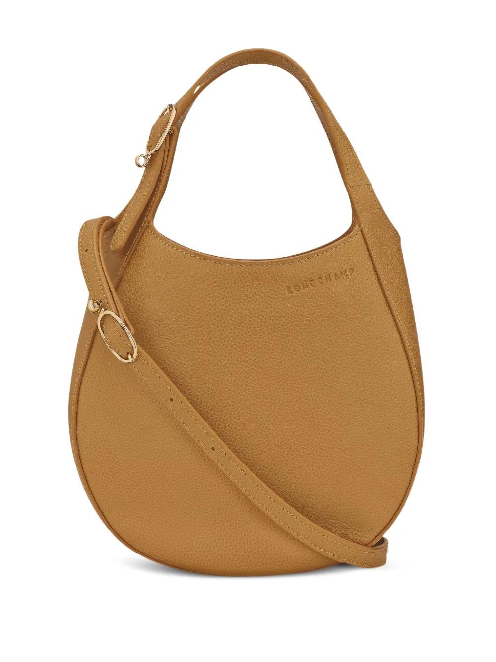 nutmeg grained leather rounded shape top handle detachable shoulder strap gold-tone buckle
