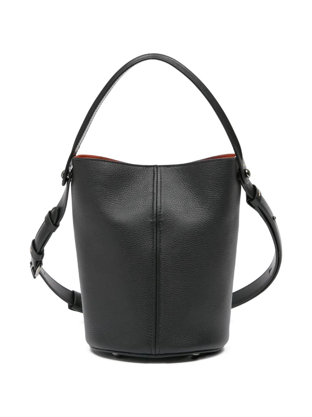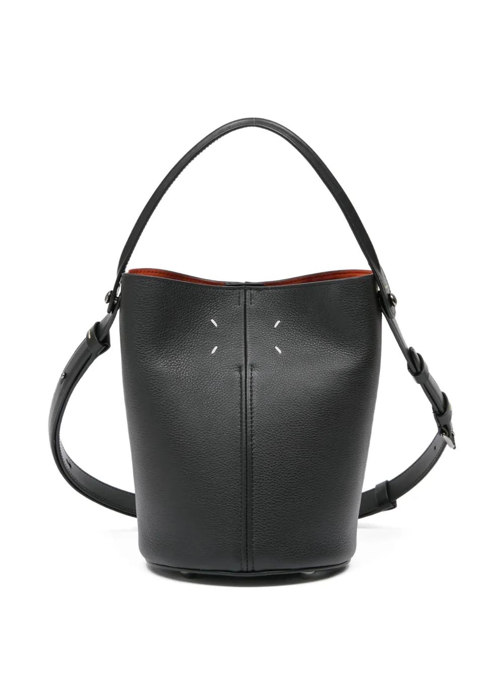 black calf leather single top handle shoulder strap signature four stitches at the front