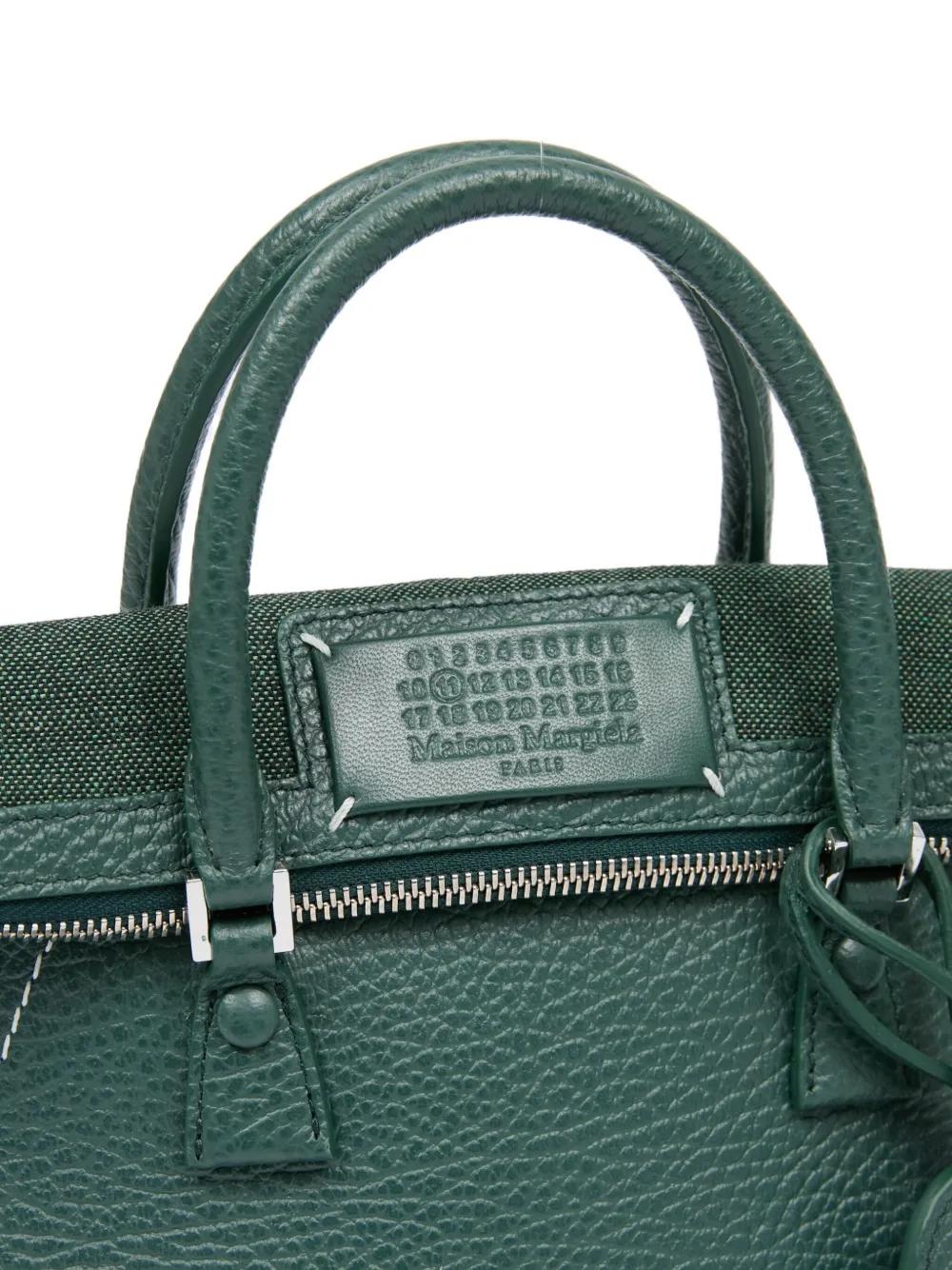 forest green grained texture top handles detachable shoulder strap zip fastening key charm padlock charm