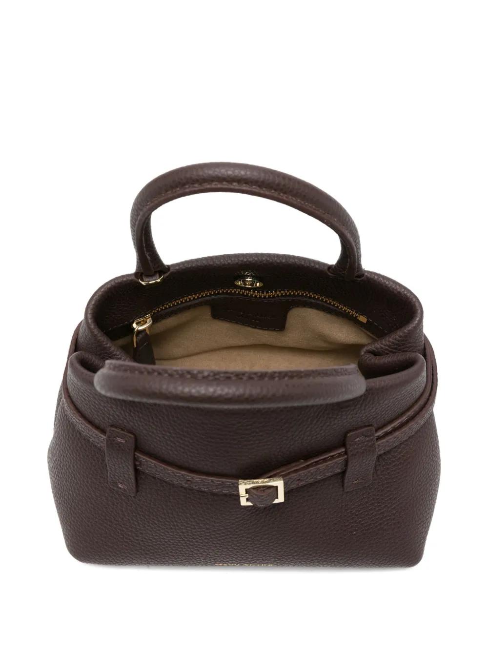 brown leather buckle fastening top handles detachable shoulder strap gold-tone hardware
