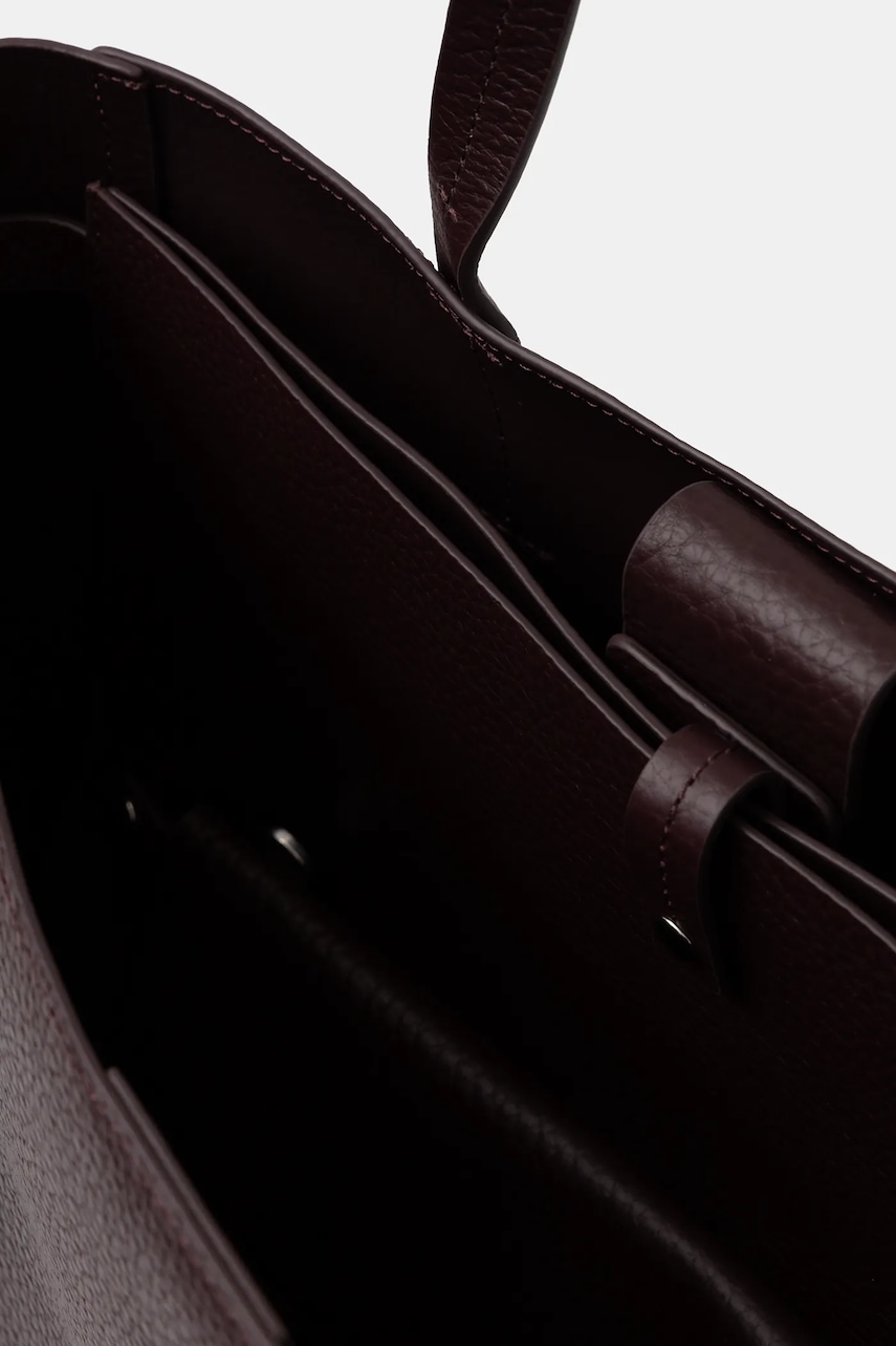 - Model wyprodukowany zgodnie z założeniami organu Leather Working Group, który wydaje garbarniom certyfikaty na drodze rygorystycznych audytów. Celem tych działań jest ograniczenie zużycia energii i wody potrzebnej do garbowania skóry, a także wyeliminowanie zanieczyszczenia ściekami. - Produkt wyprodukowany zgodnie z założeniami Fair Wear Foundation, organizacji zrzeszającej marki odzieżowe tworzące produkty w bardziej zrównoważony i etyczny sposób. Produkty oznaczone znakiem Fair Wear powstały w fabrykach, które pozytywnie przeszły zewnętrzny audyt i zapewniają pracownikom odpowiednie warunki pracy oraz wynagrodzenie. - Komora zapinana na magnes. - Brak kieszeni wewnętrznych. - Model bez podszewki. - Mieści format A4. - Wypinana komora zapinana na suwak. - Do modelu dołączona mała torebka. - Długie uchwyty dla komfortowego noszenia w dłoni lub na ramieniu. - Odpinany pasek z regulacją. - Dołączony tekstylny worek zabezpiecza produkt przed kurzem. - Głębokość: 11 cm. - Wysokość: 29 cm. - Szerokość u podstawy: 37,5 cm. - Długość uchwytów: 54 cm. - Długość minimalna paska: 118 cm. - Długość maksymalna paska: 132 cm.