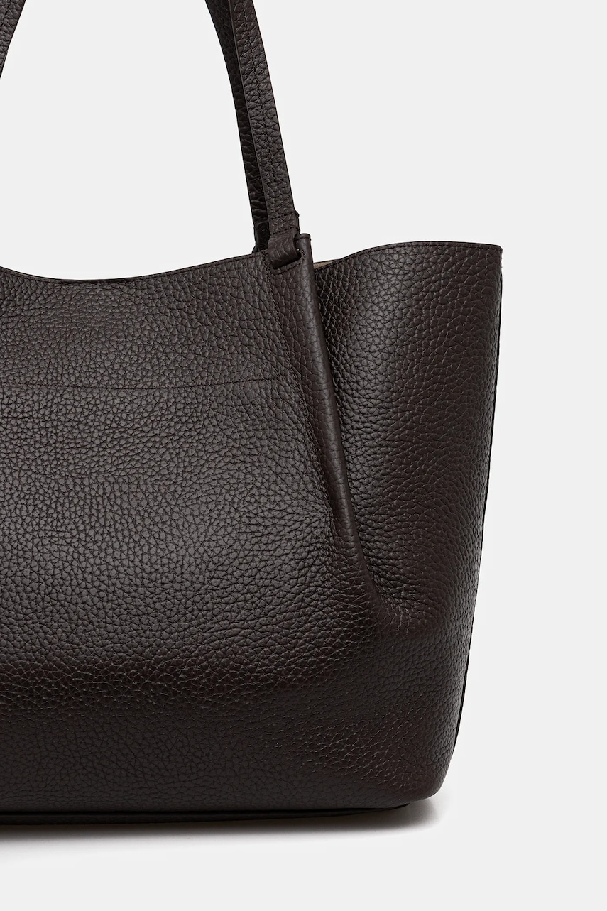 - Model wyprodukowany zgodnie z założeniami organu Leather Working Group, który wydaje garbarniom certyfikaty na drodze rygorystycznych audytów. Celem tych działań jest ograniczenie zużycia energii i wody potrzebnej do garbowania skóry, a także wyeliminowanie zanieczyszczenia ściekami. - Produkt wyprodukowany zgodnie z założeniami Fair Wear Foundation, organizacji zrzeszającej marki odzieżowe tworzące produkty w bardziej zrównoważony i etyczny sposób. Produkty oznaczone znakiem Fair Wear powstały w fabrykach, które pozytywnie przeszły zewnętrzny audyt i zapewniają pracownikom odpowiednie warunki pracy oraz wynagrodzenie. - Komora zapinana na magnes. - Dodatkowe kieszenie wewnętrzne pozwalają na bezpieczne przechowywanie drobiazgów. - Torebka do noszenia w ręku lub na ramieniu. - Długie uchwyty. - Regulacja głębokości na zatrzaski. - Mieści format A4. - Model bez podszewki. - Liczba zapinanych na suwak kieszeni wewnętrznych: 1. - Liczba wsuwanych kieszeni wewnętrznych: 2. - Długość uchwytów: 55 cm. - Głębokość: 12 cm. - Wysokość: 33 cm. - Szerokość u podstawy: 35 cm.