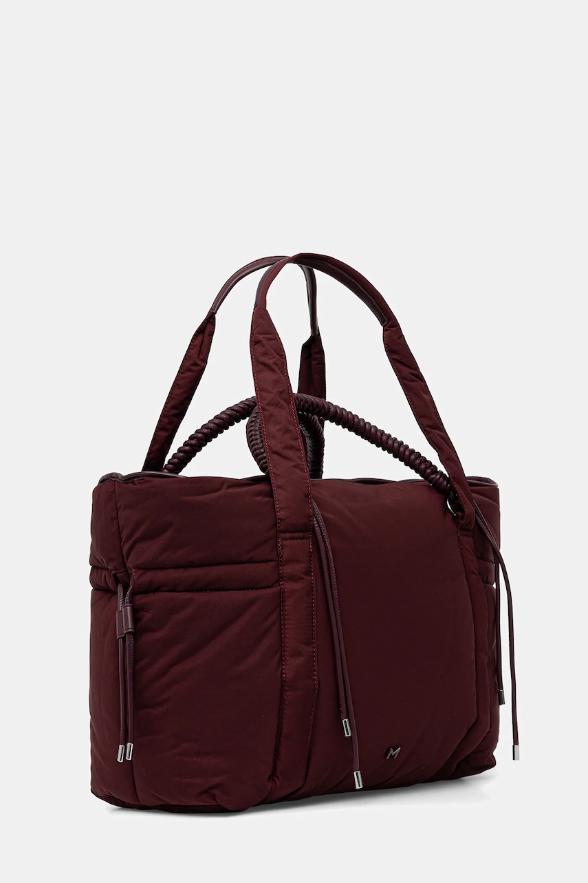 - Poliester użyty do wykonania tego modelu jest przynajmniej w połowie poliestrem pochodzącym z recyklingu. - Komora zapinana na suwak. - Z przodu wsuwana kieszeń, która ułatwia bezpieczne przechowywanie telefonu lub innych drobiazgów. - Wewnętrzna przegroda na kartę. - Kieszonka wewnętrzna zapinana na suwak pozwala przechować najpotrzebniejsze drobiazgi. - Torebka do noszenia w ręku lub na ramieniu. - Długie uchwyty. - Odpinane, krótkie uchwyty. - Mieści format A4. - Model z podszewką. - Dołączony tekstylny worek zabezpiecza produkt przed kurzem. - Długość uchwytów: 45 cm / 74 cm. - Głębokość: 20 cm. - Wysokość: 40 cm. - Szerokość u podstawy: 42 cm.