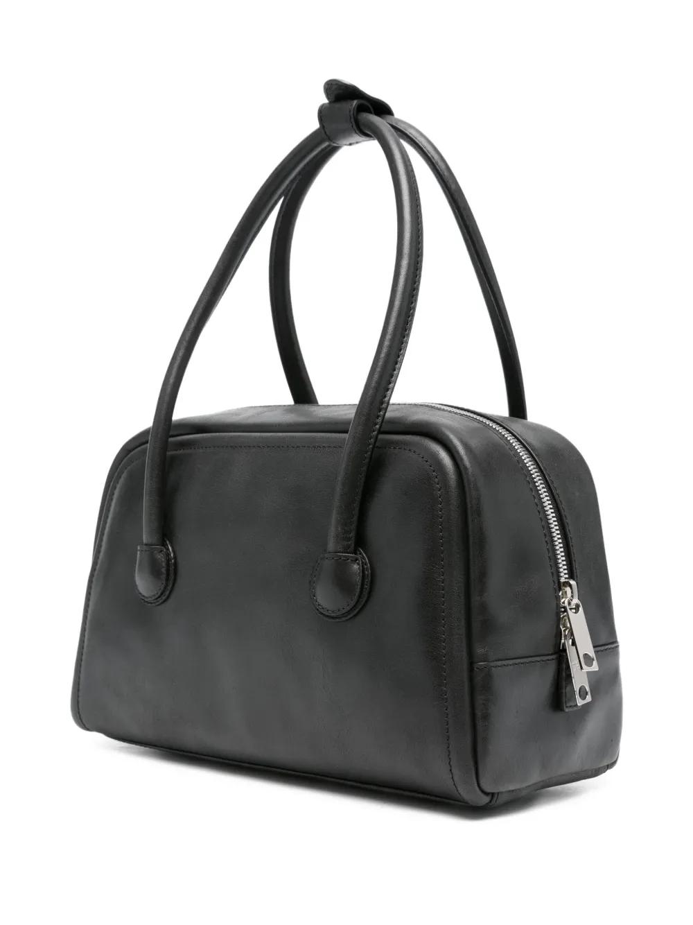 black calf leather top handle zip fastening embossed logo