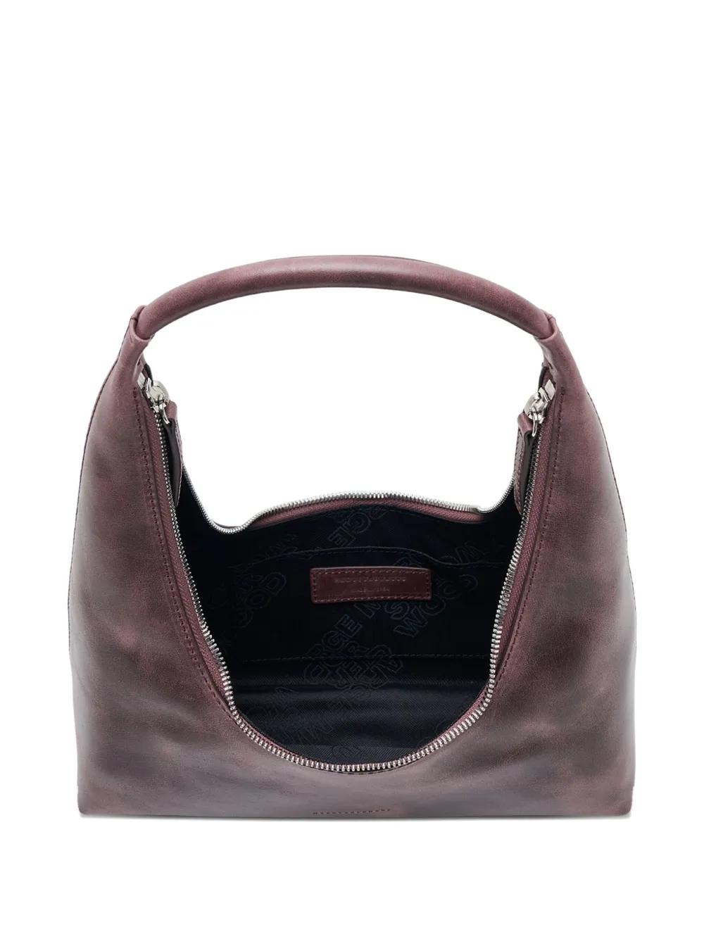 burgundy curved-edge body top zip fastening single top handle calf leather