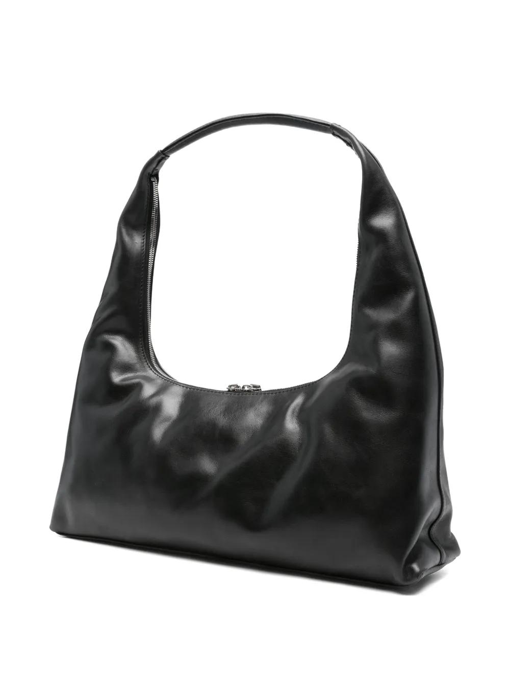 black leather top handle zip fastening debossed logo