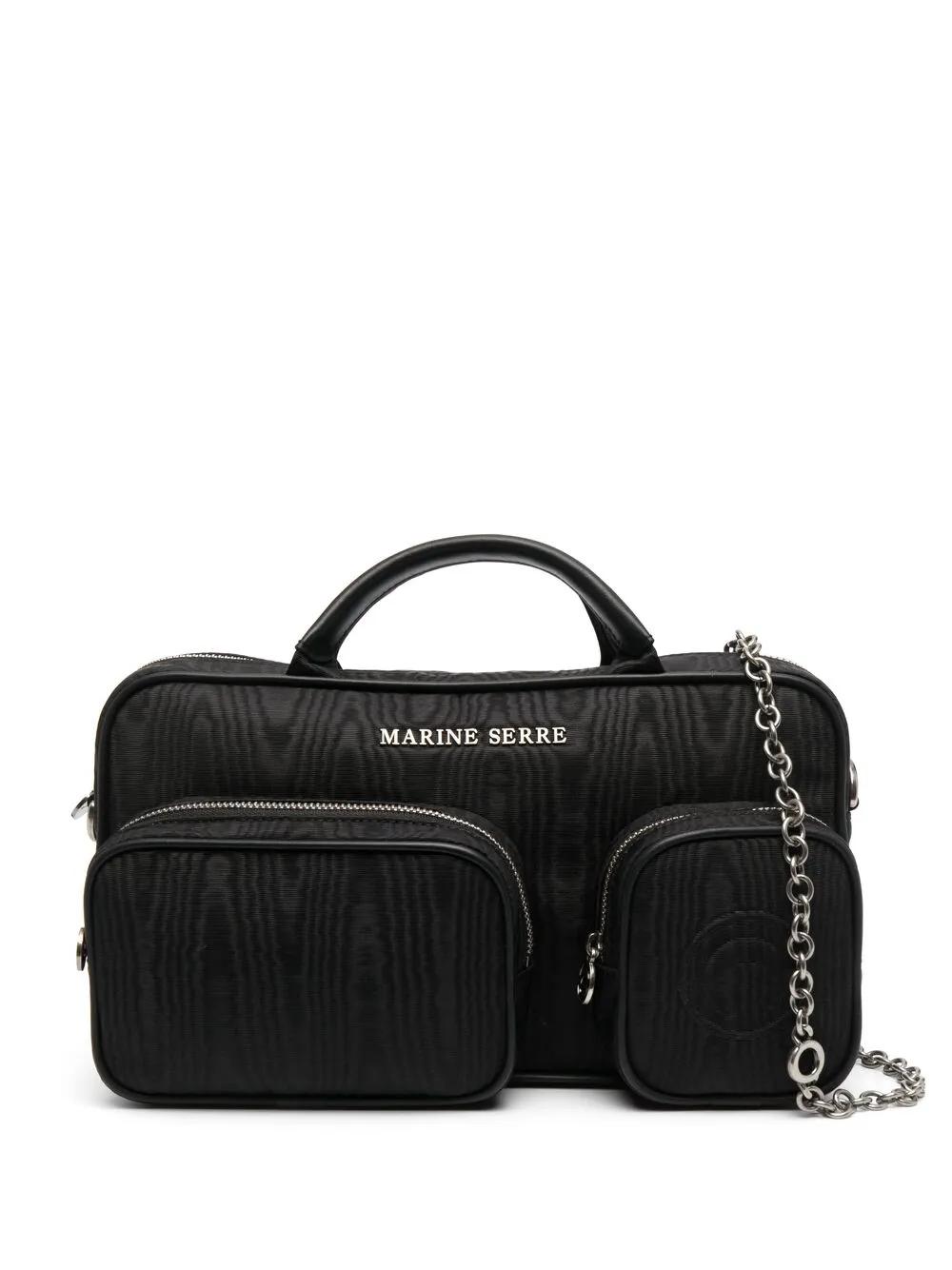 Marine Serre logo-lettering zipped shoulder bag - Black