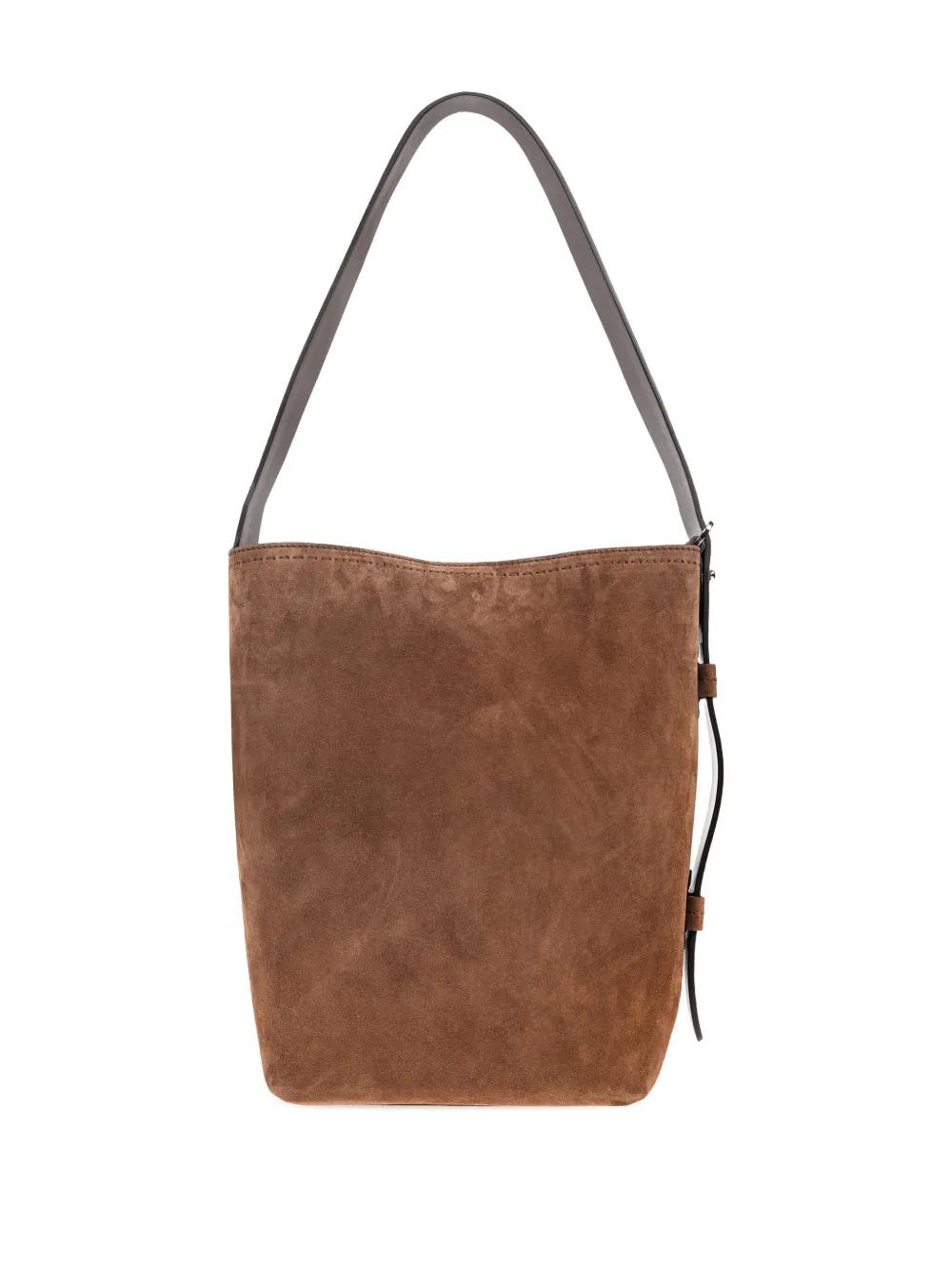 brown magnetic fastening adjustable shoulder strap subtle logo detailing metal feet slip pocket on side