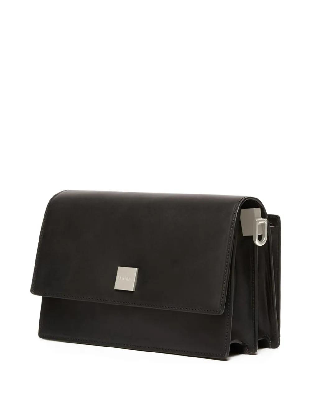 black leather silver-tone hardware front flap closure detachable shoulder strap internal zip pocket