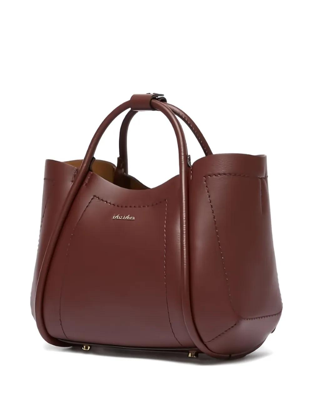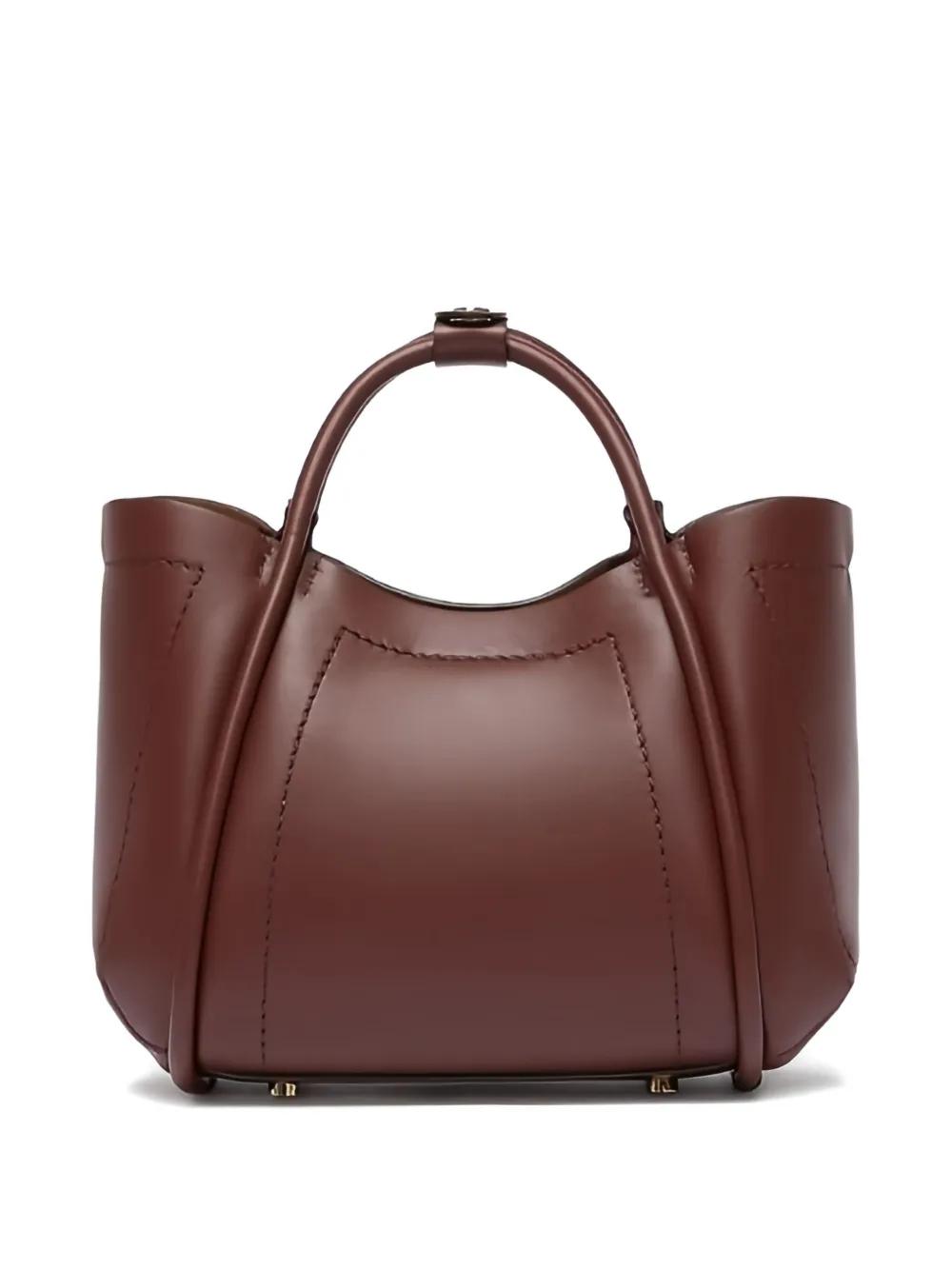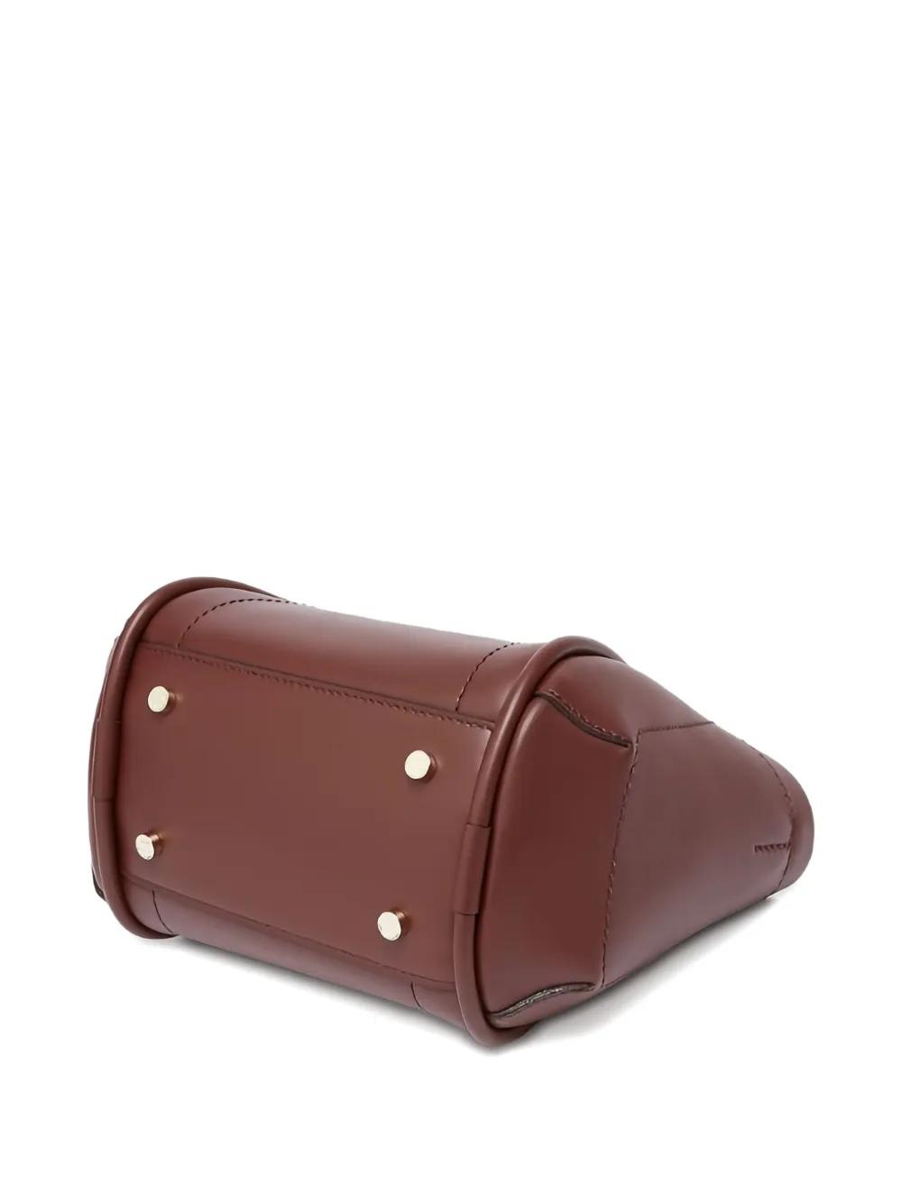 burgundy top handle leather construction curved silhouette stitch detailing metal feet Please refer to the Size & Fit tab to learn more about this item's dimensions.