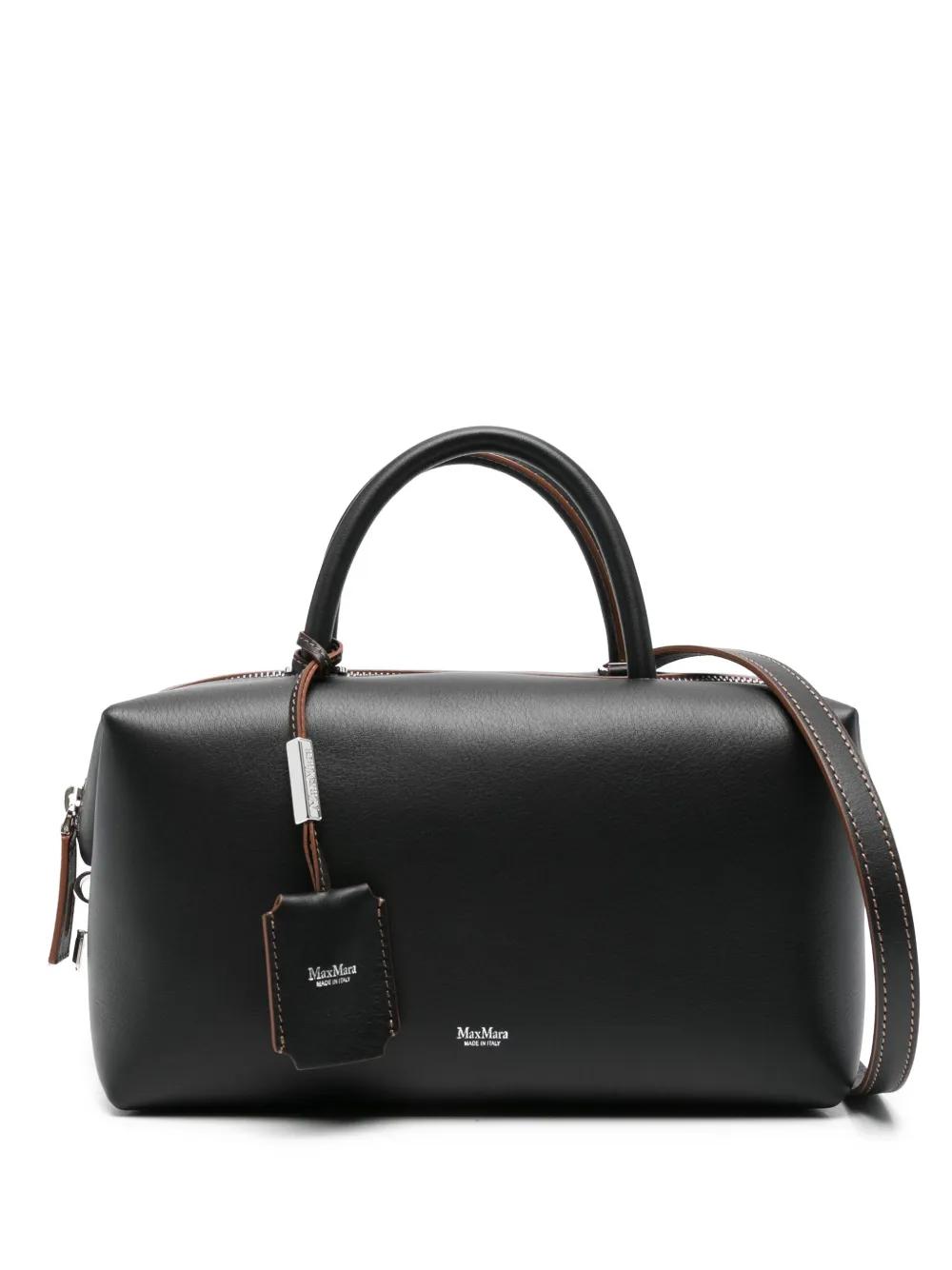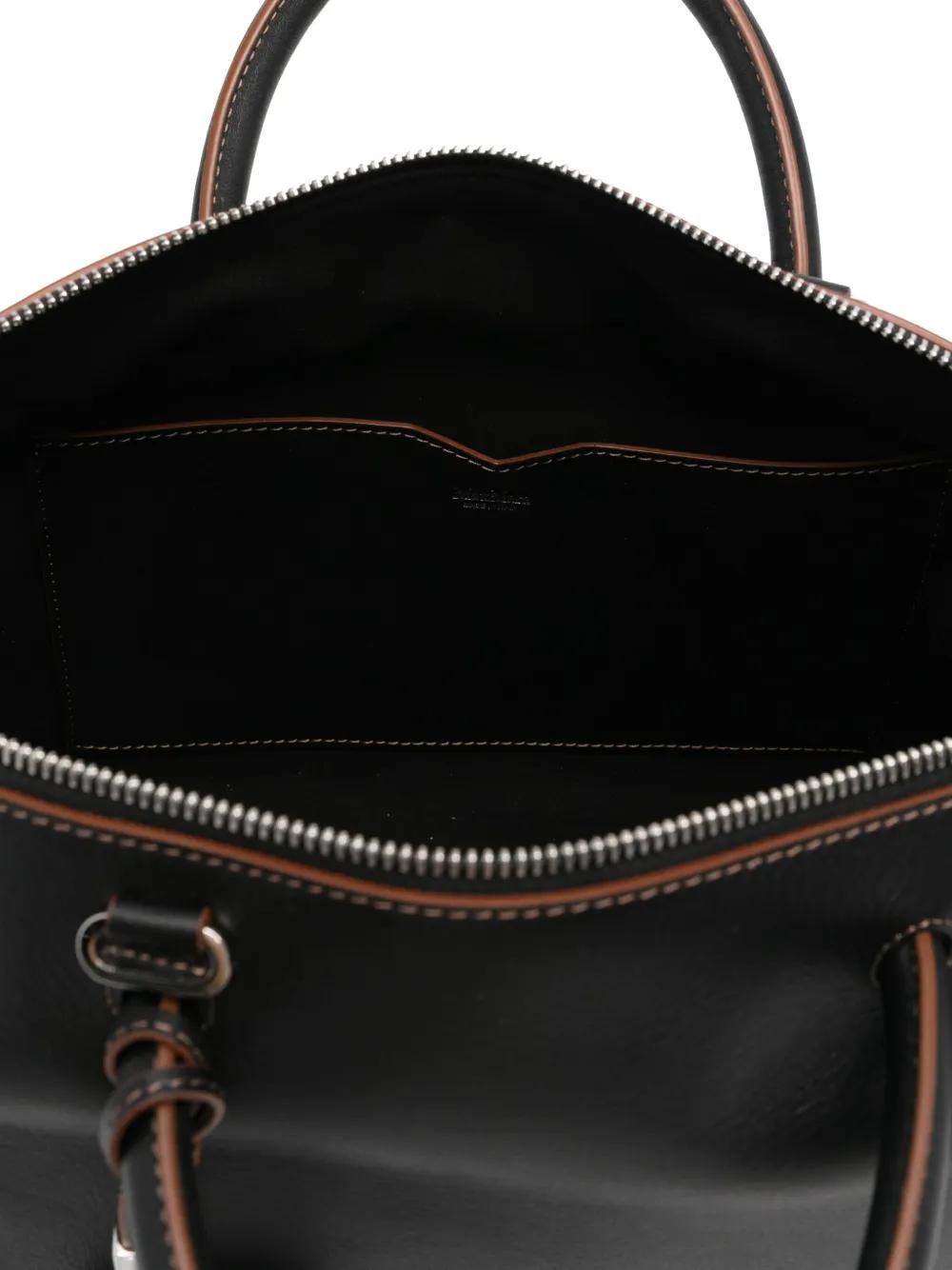 black top zip fastening two rolled top handles adjustable detachable shoulder strap logo stamp to the front